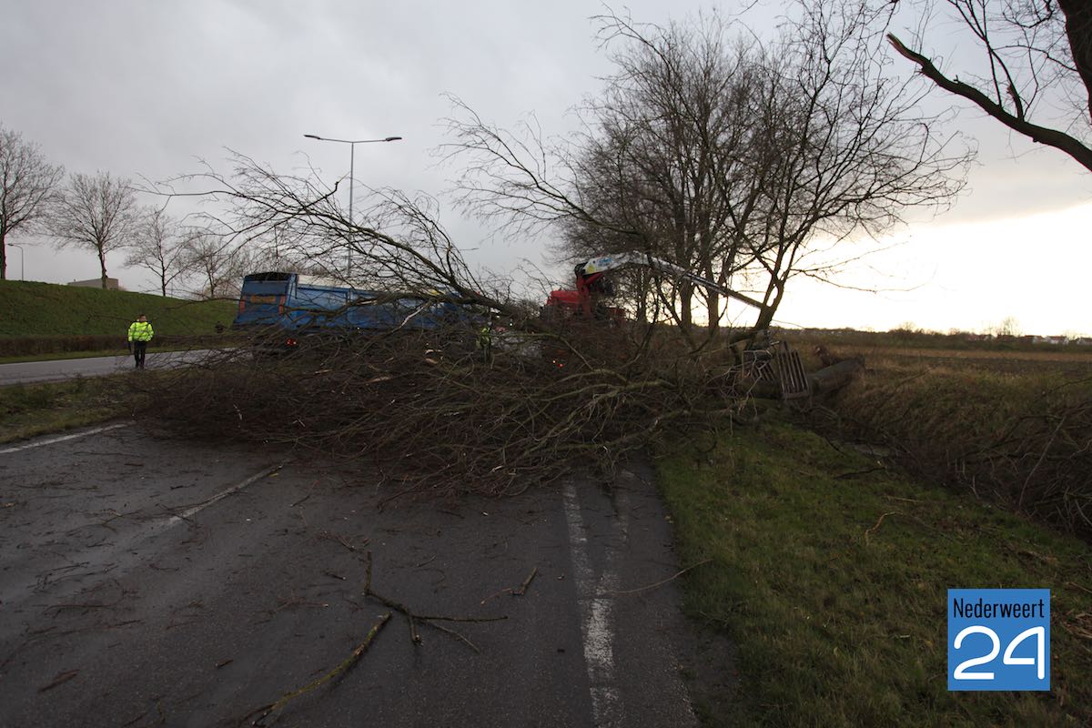 Boom op ringbaan Noord WeertDonderdagmiddag is een boom op een auto gevallen op de Ringbaan Noord in Weert. Door de harde rukwinden van vandaag is de boom omgewaaid net op het moment dat een auto daar reed. Een achteropkomende auto kon de boom nog net ontwijken. De bestuurster had lichte schade aan haar auto. Niemand is gewond geraakt.
