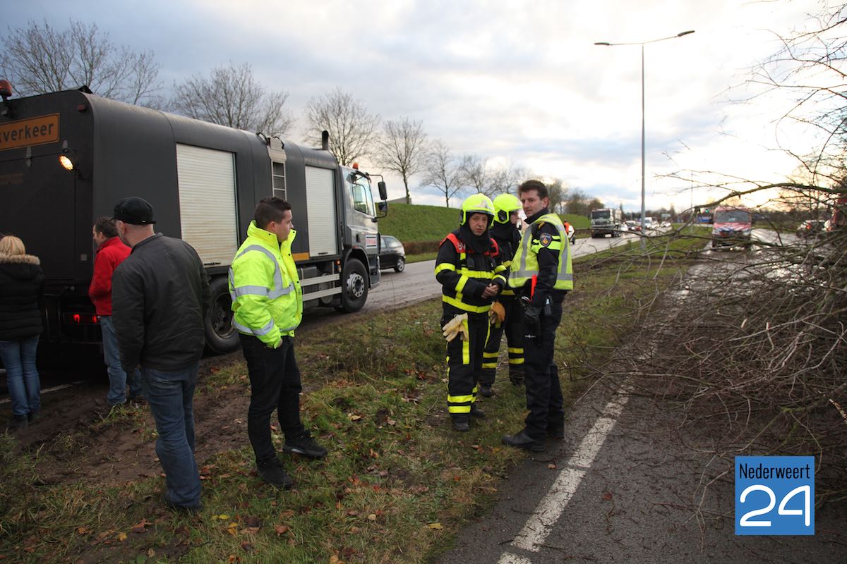 Door de omgevallen boom was de complete weghelft richting de turborotonde geblokkeerd. Vrachtwagens die via de middenberm naar de andere weghelft wilden uitwijken, kwamen vast te zitten. Behulpzame vrachtwagenchauffeurs hebben de vastzittende voertuigen uit de blubber getrokken. De brandweer en de gemeente kwamen ter plaatse om de boom klein te zagen zodat de rijbanen weer vrij konden worden gemaakt voor het verkeer. De politie heeft het verkeer omgeleid tot de rijbanen weer vrijwaren.