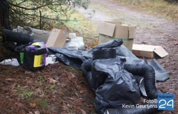Donderdag zijn de politie en brandweer gealarmeerd voor een afvaldumping in de Budelerbergen, het bosgebied tussen Weert en Budel.