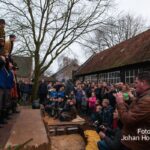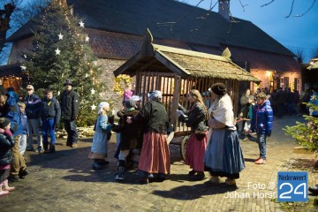 Grote rijen publiek tijdens het Eynder Winter Festijn spektakel. Al ruim voordat de poorten om 15:00 uur open gingen stonden rijen mensen te wachten om te genieten van de sprookjesachtige taferelen in Openluchtmuseum Eynderhoof in Nederweert-Eind.