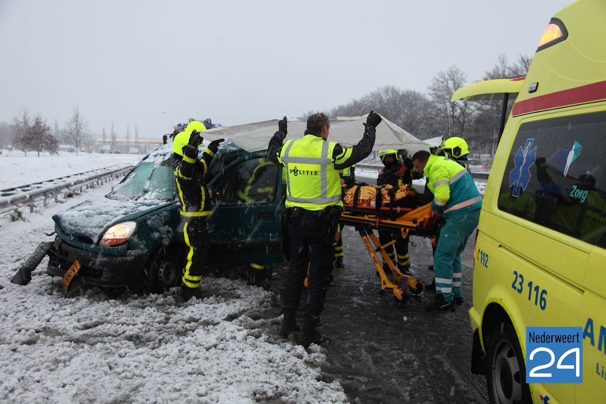 De auto waarin de vrouw zat is waarschijnlijk door een vrachtwagen geraakt en rechts in de vangrail geraakt. De persoon is door de brandweer uit de auto gehaald en naar het ziekenhuis vervoerd. De vrachtwagen was niet meer op de plaats van het incident. De politie onderzoekt de toedracht van het ongeval.