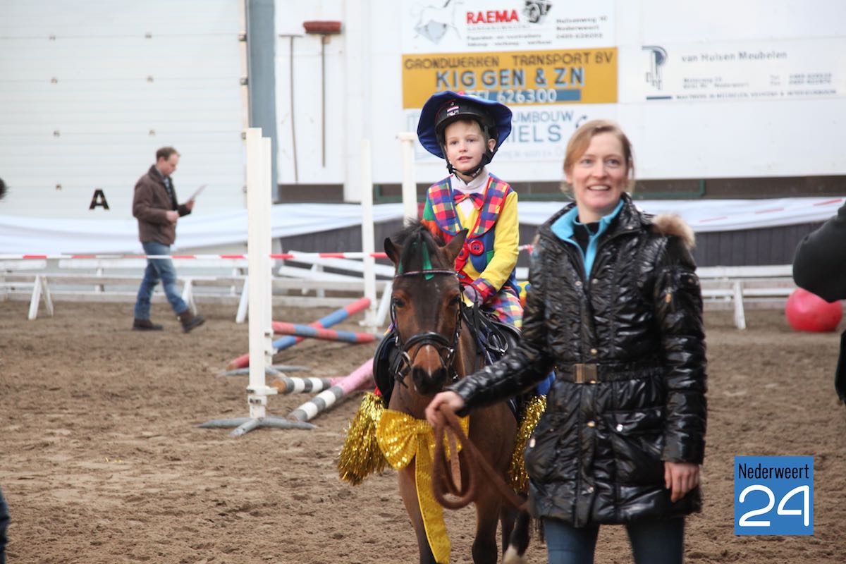 De jeugd van 6 tot 16 jaar hadden goed hun best gedaan om de prijs van mooist verkleed koppel in de wacht te slepen. Zowel de ruiters als de paarden waren prachtig verkleed of opgedost als clown.