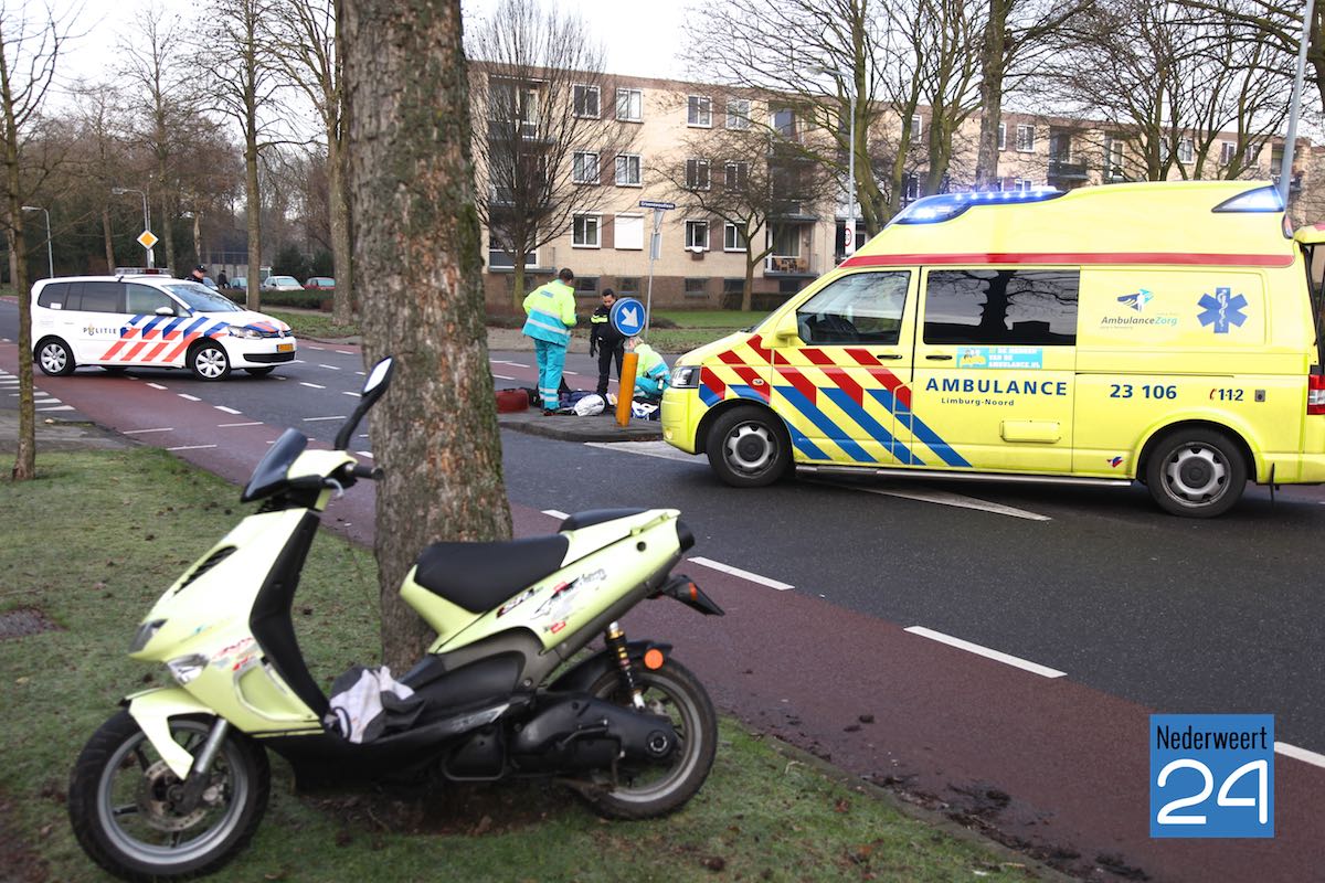 Dinsdagmorgen is een scooterrijder gewond geraakt aan zijn hoofd nadat hij op de Maaslandlaan in Weert met zijn scooter onderuit was gegaan.
