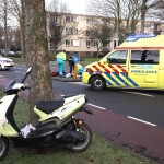 Het ongeluk gebeurd op de kruising met de Groenewoudlaan. De scooterrijder is door onbekende oorzaak de macht over het stuur verloren en gevallen. Ondanks dat hij een helm droeg liep hij een flinke snee aan zijn hoofd op. De ambulance heeft de man gestabiliseerd en meegenomen naar het ziekenhuis.