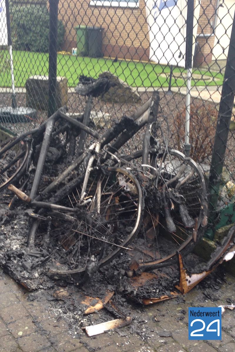 Donderdagmorgen zijn twee elektrische fietsen compleet verwoest door brand bij rijwielhandel Janssen aan de Jacobusstraat in Hunsel.