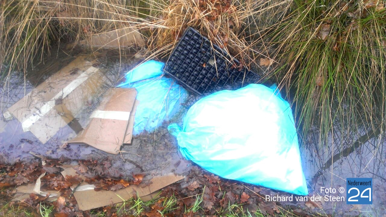 Dump Heugterdijkweg NederweertDonderdagochtend is  in een sloot aan de Heugterbroekdijk in Nederweert hennepafval aangetroffen. In de sloot langs de weg die richting de Daatjeshoeve loopt, bevinden zich meerdere lichtblauwe zakken met daarin rekjes voor plantjes en voedingsstof.