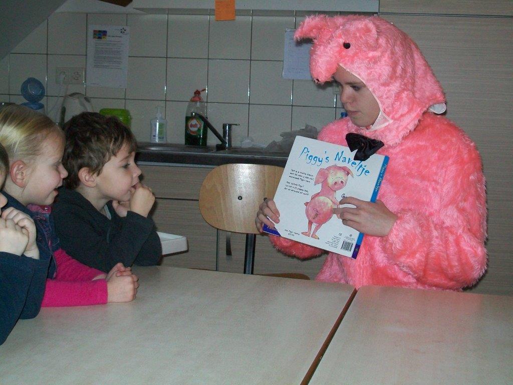 Het was een waar dierenfestijn. Iedereen die kwam voorlezen, was verkleed als een dier. Zo was er de voorlees-koe, het lees-varken en de vertel-eend. Naast voorlezen werd er gezongen en geknutseld over de dieren uit het boek. Voor de kinderen een hele belevenis en leerzame ervaring.