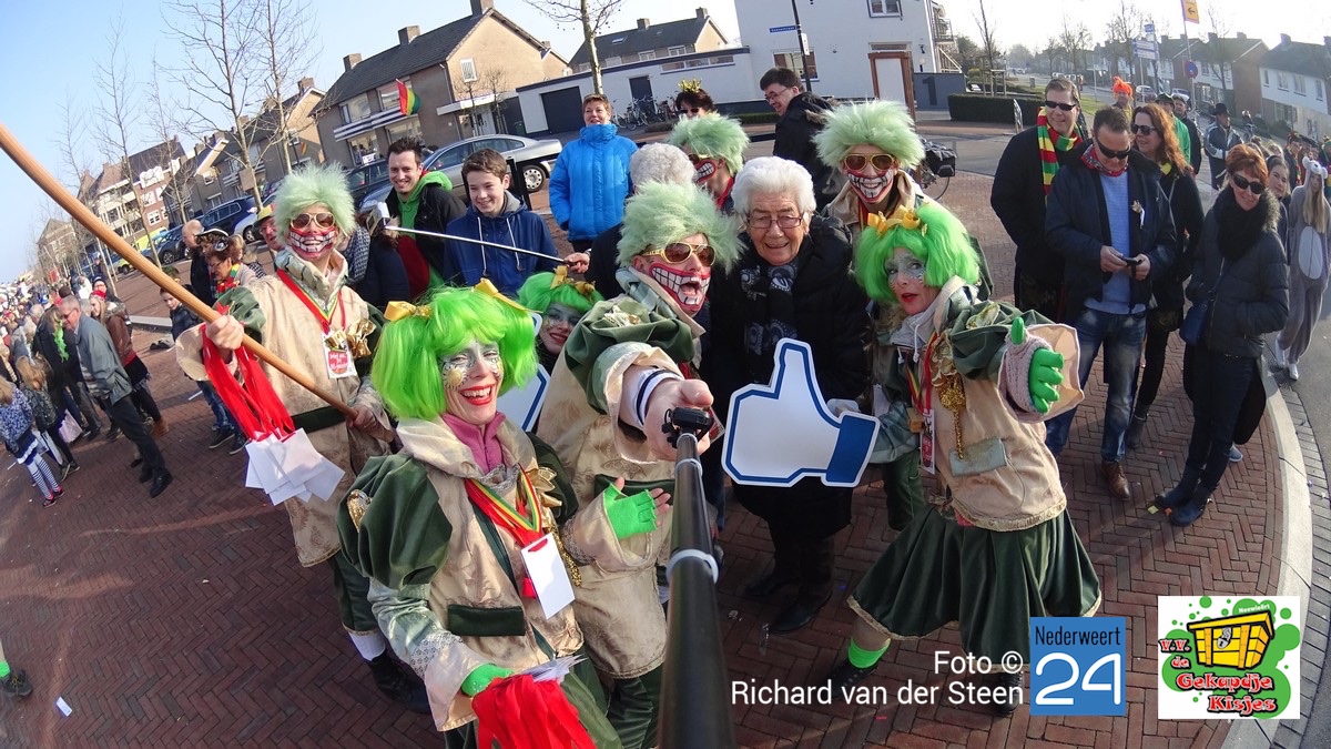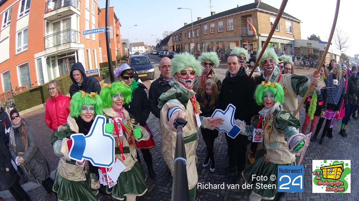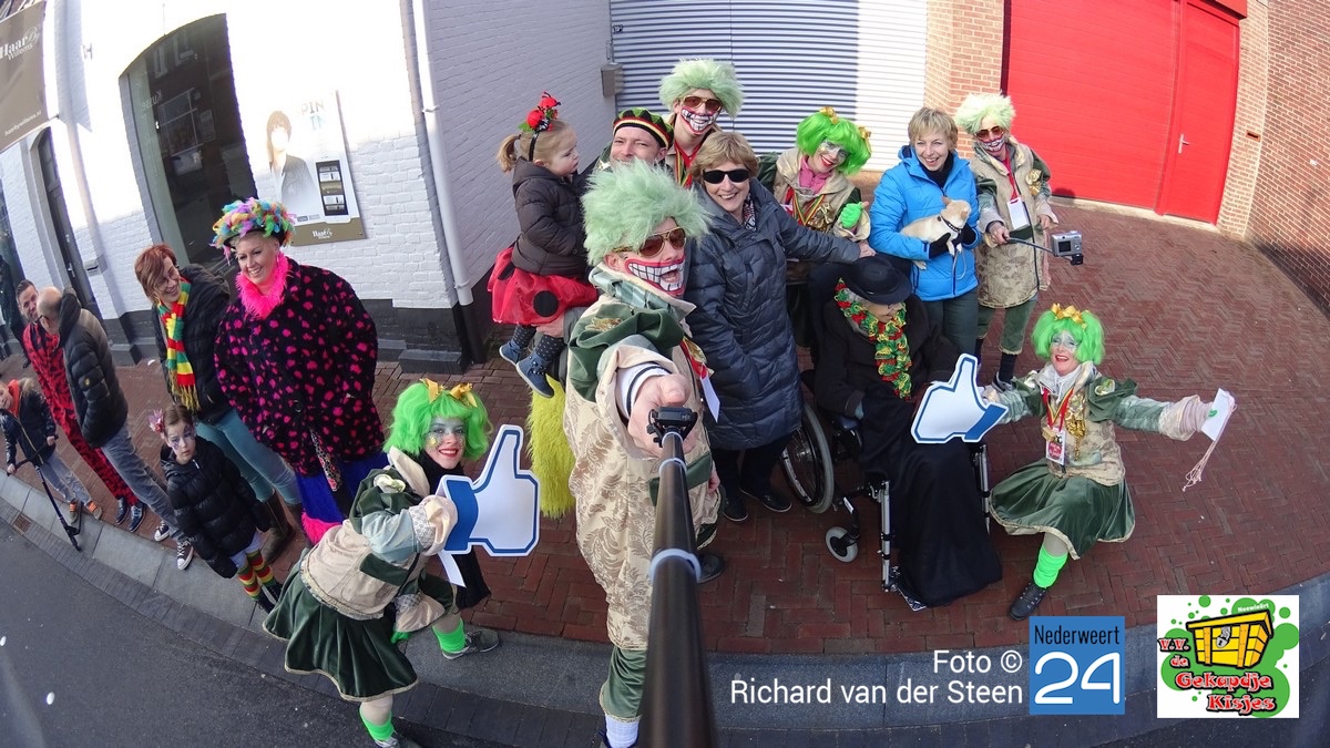 Tijdens de grote carnavalsoptocht van Nederweert hebben V.V. de Gekapdje Kisjes bijna 200 selfies gemaakt samen met het publiek. Met deze ludieke actie hebben ze de 1ste plaats behaald bij de Midden Groepen.
