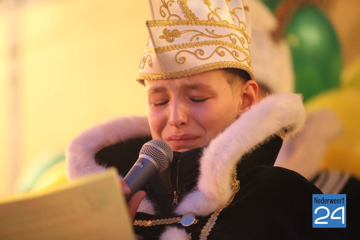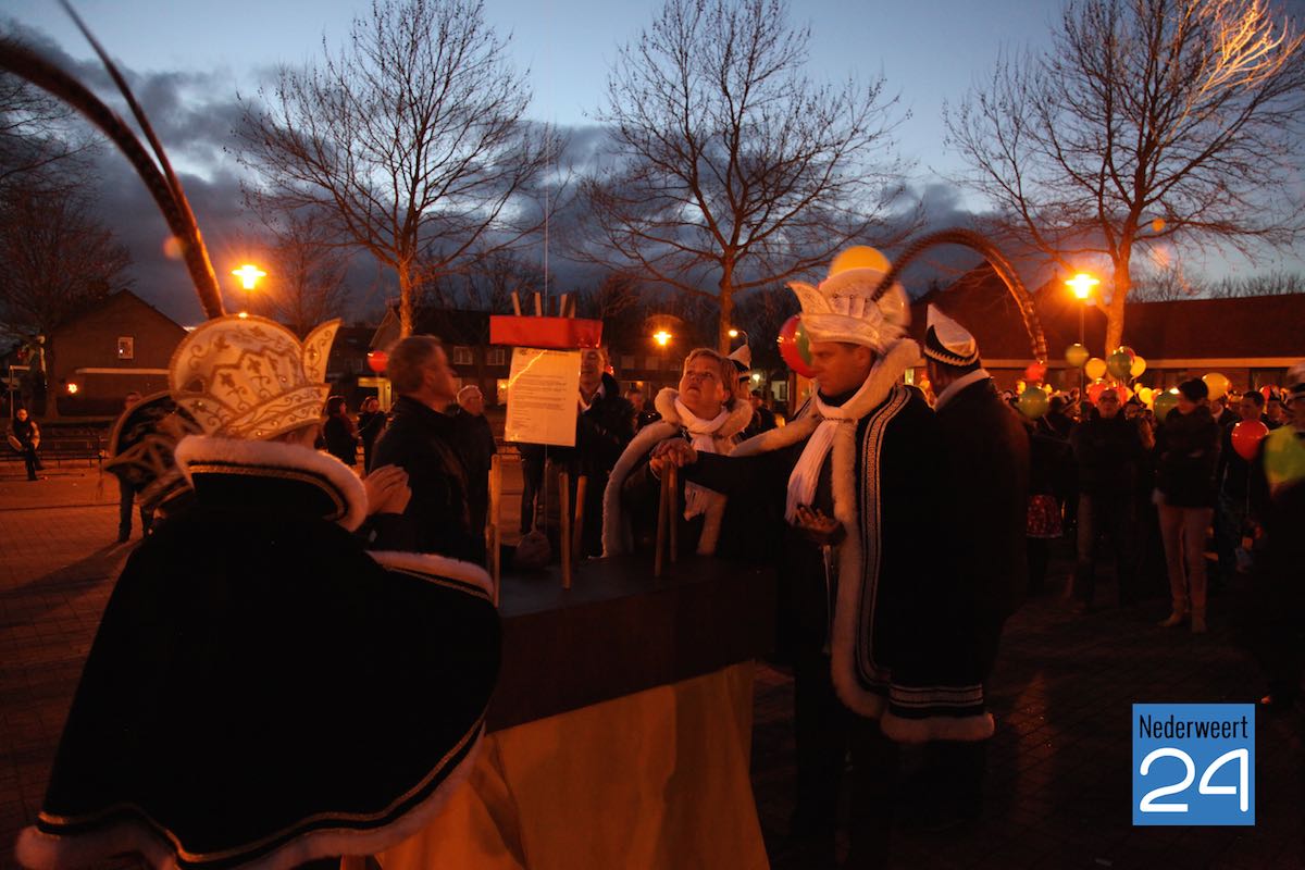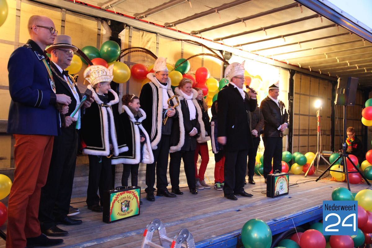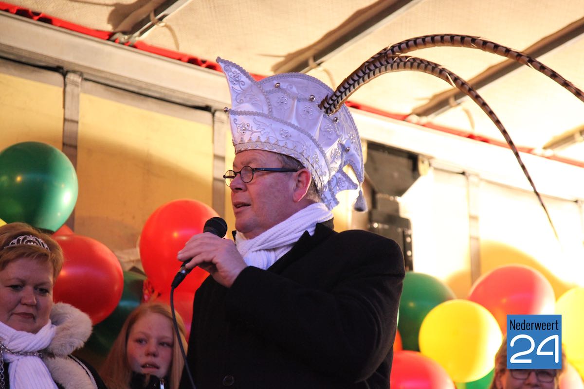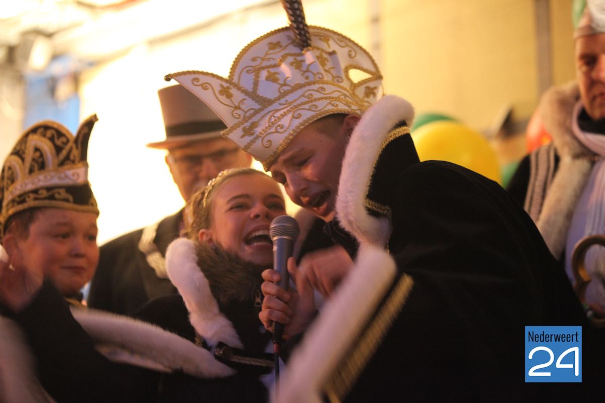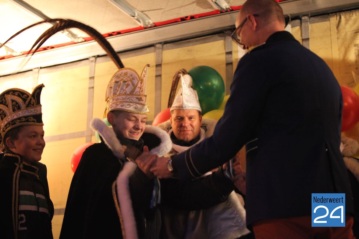 Jeugdprins Ids wilde de sleutel niet teruggeven voordat wethouder Mackus antwoord gaf op de vraag die hij bij de sleuteloverdracht afgelopen zaterdag gesteld had. “Hoe kunnen we er voor zorgen dat er meer georganiseerd wordt voor de jeugd van Nederweert?” Hubert zei toe dat hij samen met Ids naar OutRageous in Leveroy gaat om te zien hoe ze het daar doen. “Dat kun je dan zelf in Nederweert in praktijk gaan brengen” aldus Hubert. “Dat is afschuiven meneer de wethouder…” reageerde het publiek.