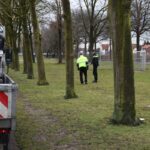 De politie heeft maandagmorgen verdachte hondenbrokken laten opruimen in het Rochuspark van Budschop, Nederweert.