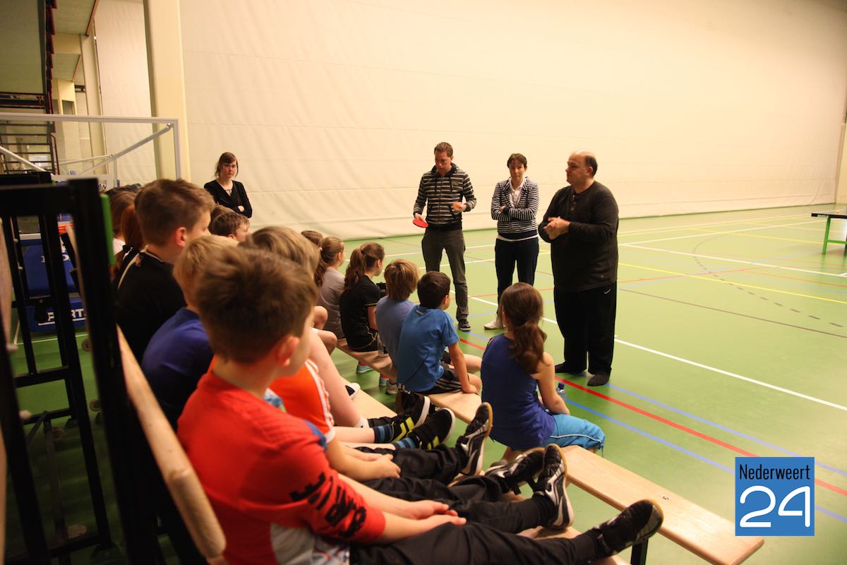De kinderen van groep 5 en 6 mochten woensdag in Sporthal de Bengele kennis maken met deze sport. Wido Engelen van TTCN’72 gaf de kinderen les. Hij deed dit samen met fanatiek tafeltennisser en radioverslaggever van L1 Frank Moonen. Frank was naar Nederweert gekomen om verslag te doen voor L1 radio maar bovenal om zelf een potje mee te spelen omdat hij het zo’n mooie sport vindt.