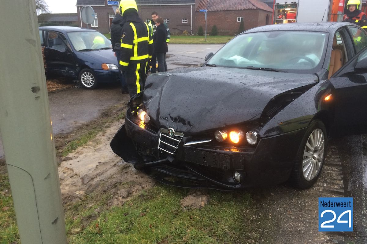 Donderdagmiddag zijn twee personenauto’s hard met elkaar in botsing gekomen op de kruising Hoofstraat – Budschop in Nederweert.