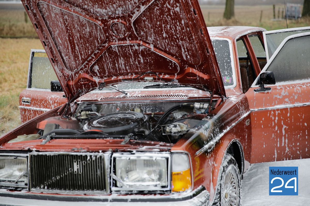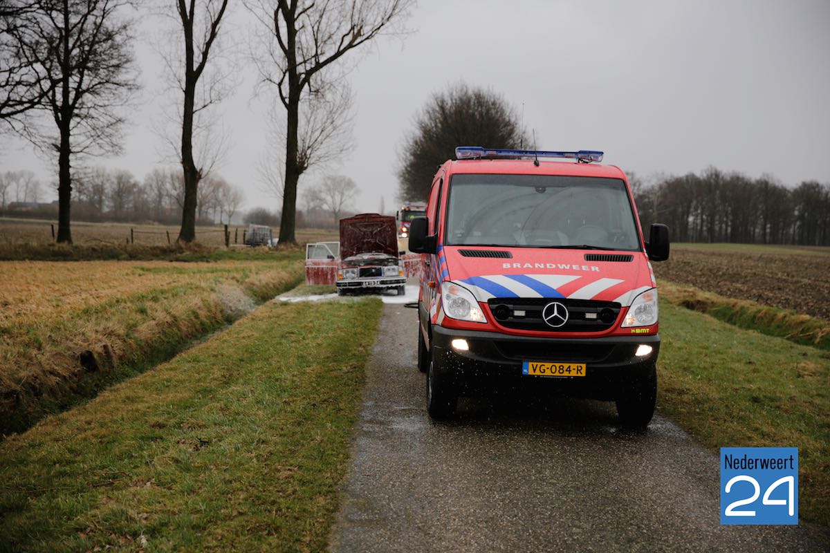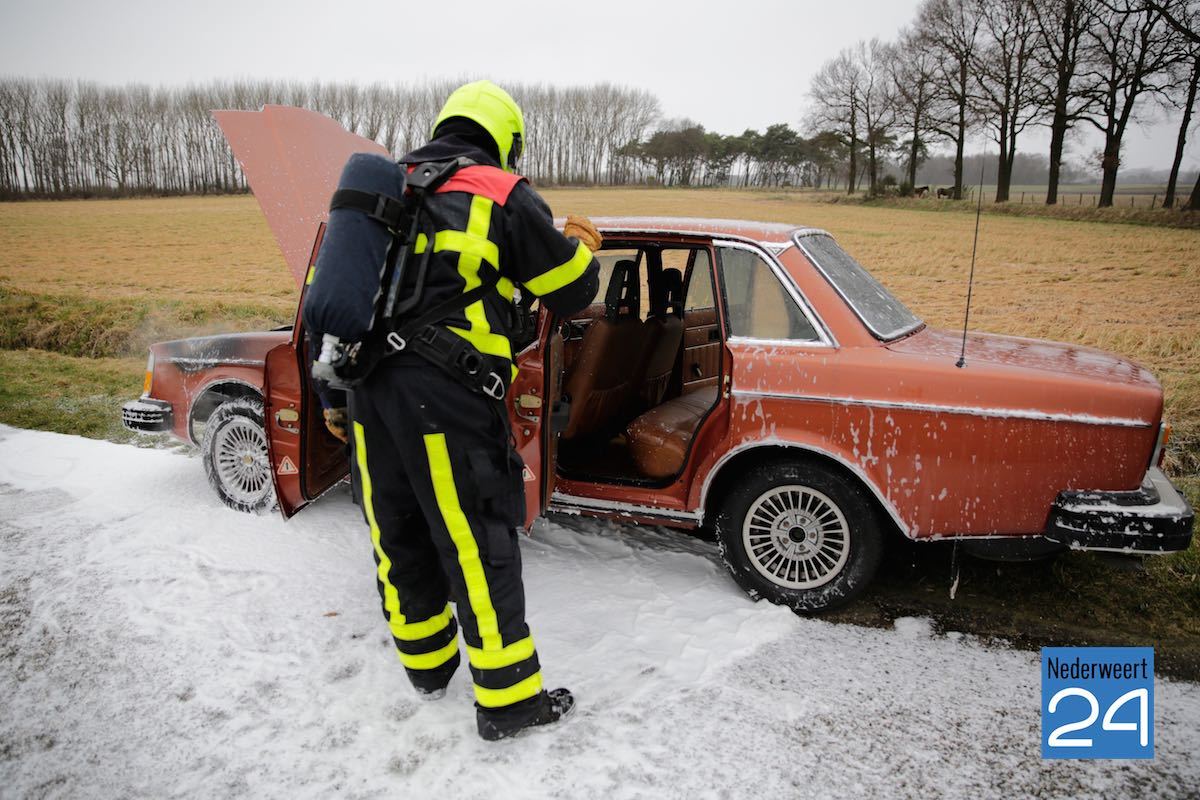 Een mooi gerestaureerde oldtimer heeft maandagmiddag tijdens de eerste rit vlam gevat. De auto strandde op de Veestraat tussen Leveroy en Heythuysen.