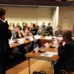 Daarna kregen de 11 deelnemers aan het rondetafelgesprek één minuut de tijd om iets te vertellen over de waarde van sport en cultuur vanuit hun organisatie of vakgebied. Sprekers uit het onderwijs, natuurorganisaties, sportclubs en de woningbouwvereniging gaven hun visie op de toekomst. Vanuit Stichting Land van Horne werd het belang van bewegen voor ouderen nog eens benadrukt. Marijke Vaes van Buitencentrum De Pelen gaf aan meer waarde te zien in de verbindingen tussen bewegen, muziek en cultuur. De Woningvereniging Nederweert kwam met concrete voorstellen op het gebied van samenwerking in bijvoorbeeld onderhoud van clubgebouwen.