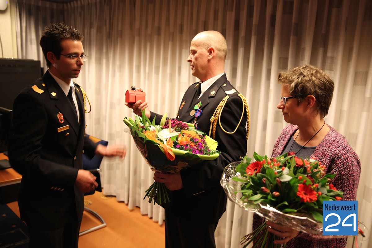 Tijdens de jaarvergadering werden vijf vrijwilligers onderscheiden. Peter Dehing, Marianne Lankester, Mourik Koppen en Jan Mueters zijn sinds 1994 en dus 20 jaar vrijwilliger bij de brandweer in Nederweert. Ze ontvingen de medaille voor 20 jaar dienstverband en een dikke bos bloemen. Patrick Broens werd onderscheiden omdat hij 12,5 jaar in dienst is bij de Veiligheidsregio.