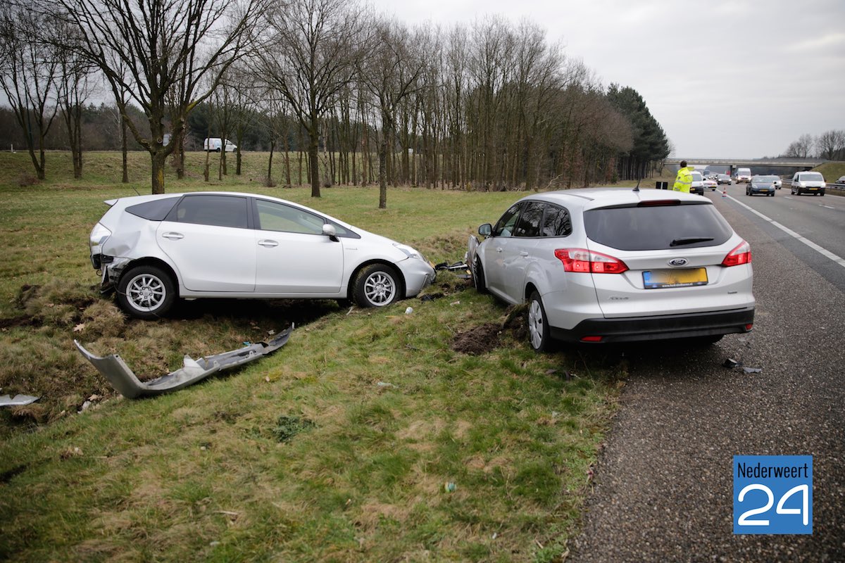 Door nog onbekende oorzaak hebben beide auto’s elkaar geraakt en zijn in de sloot naast de A2 tot stilstand gekomen. De inzittenden van beide auto’s zijn met de schrik vrijgekomen. Een ambulance is voor de zekerheid gewaarschuwd om de bestuurders van beide auto’s te onderzoeken.