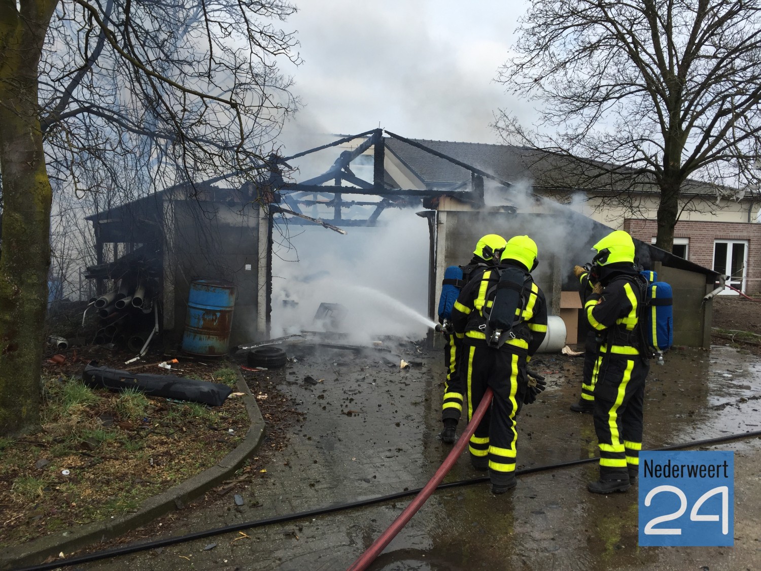 Door de brand is veel rookontwikkeling ontstaan. De rook trekt richting Weert. Mogelijk dat er asbest is vrijgekomen. Nader onderzoek moet dit uitwijzen. Vanwege de kans op overslag naar het nabijgelegen pand van Wijen Wonen & Slapen is de brandweer met twee brandweervoertuigen uitgerukt. Het vuur is momenteel grotendeels gedoofd. De brandweer heeft kunnen voorkomen dat drie gasflessen die in het schuurtje stonden, tot ontploffing zijn gekomen.