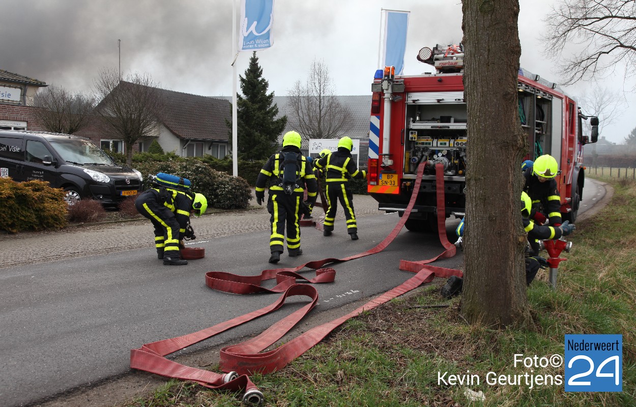 Zondagmorgen is er brand ontstaan in een schuur aan de Heerweg in Nederweert. Vanwege de kans op overslag naar het nabijgelegen pand van Wijen Wonen & Slapen is er opgeschaald naar grote brand. Een groot deel van de Heerweg is door de politie geruime tijd afgesloten geweest.