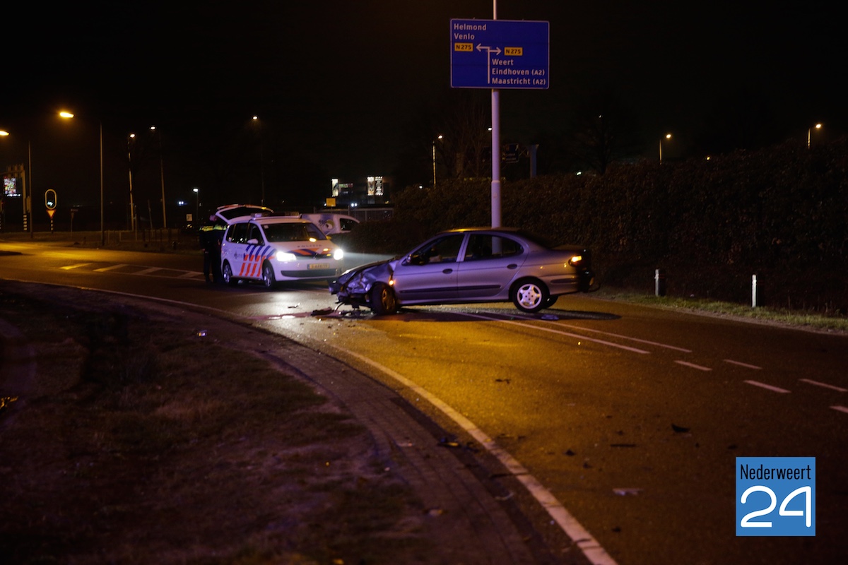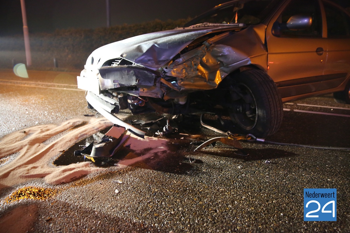 Zaterdagavond zijn twee auto’s hard met elkaar in botsing gekomen op de Randweg West in Nederweert.