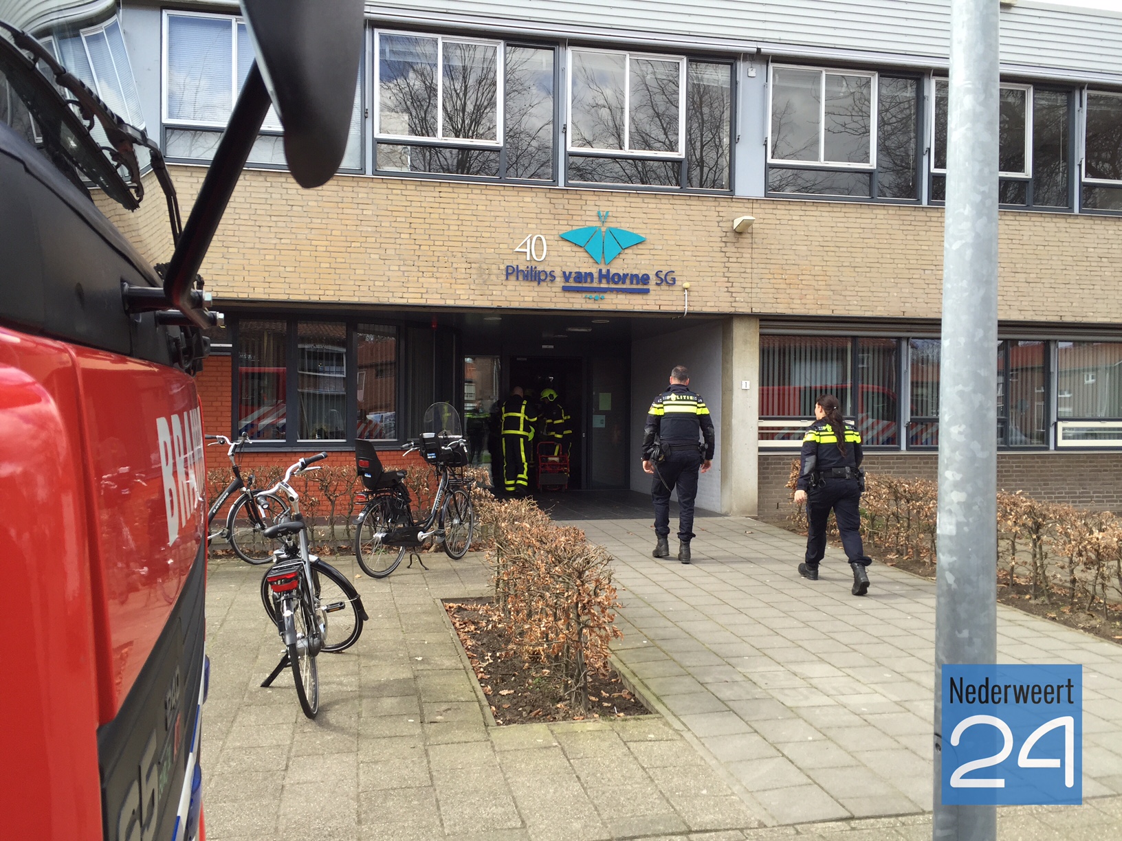 De Philips van Horne SG in Weert is vrijdagmiddag ontruimd vanwege een brand. De brand is waarschijnlijk ontstaan in de toiletten en de aula is daardoor volledig met zwarte rook komen te staan.