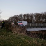 Toen een van de motorrijders de politie aan zag komen, is hij op de vlucht geslagen en met zijn motor tegen een auto aangereden die op het zandweggetje naast het kanaal reed. Door de klap is de man via de motorkap 15 meter achter de auto op de grond terechtgekomen. Vervolgens is de man te voet verder gevlucht en heeft hij zich schuilgehouden onder de Schoorbrug.