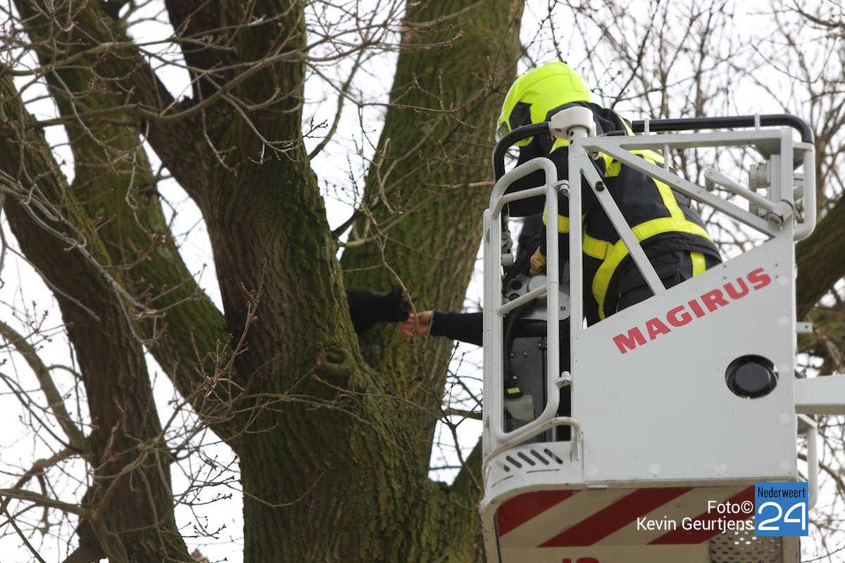 Kat in boom Hoeven Nederweert-EindDe brandweer van Nederweert heeft dinsdagmiddag een kat uit een boom gehaald bij een woning aan de Hoeven in Nederweert-Eind.