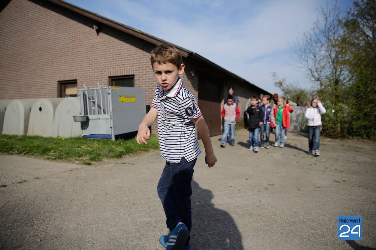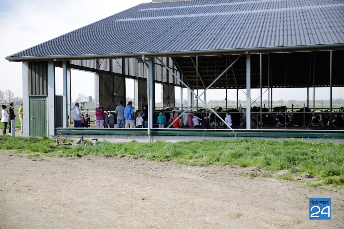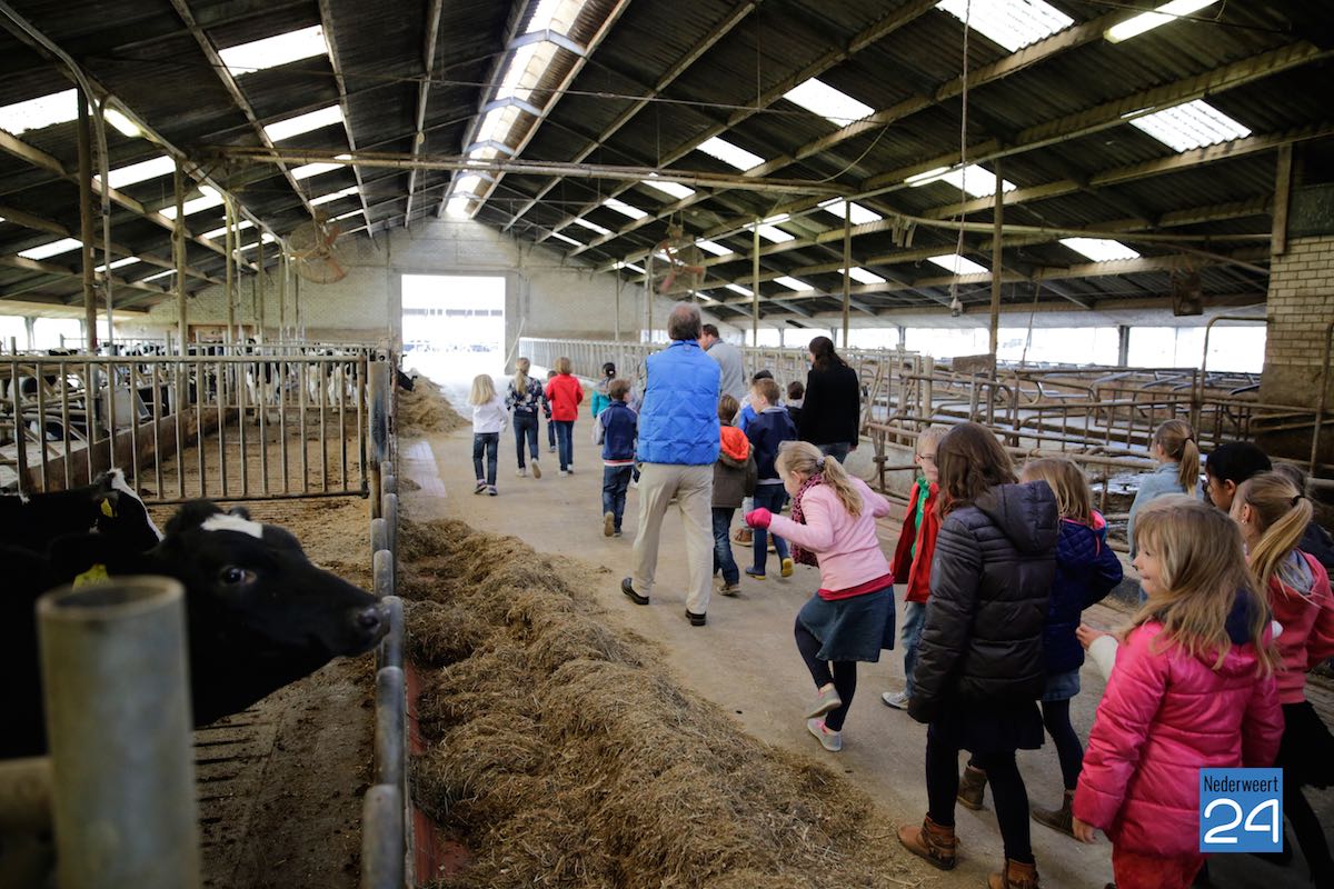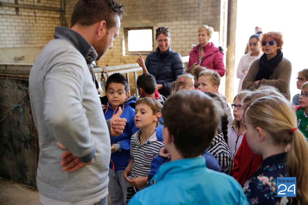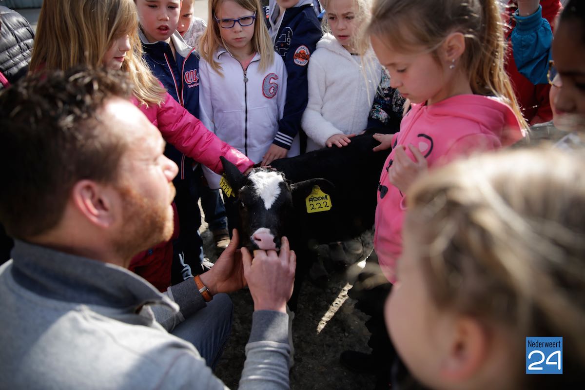 Maandag hebben kinderen van de Montessorischool uit Weert een rondleiding gekregen op de boerderij van Jakob Pustjens uit Nederweert. Samen met hun leraar en ouders mochten de kinderen overal op de boerderij rondneuzen. Ze mochten de kalfjes aaien en gingen kijken bij de zwangere koeien. Jakob vertelde enthousiast over hoe het erop de boerderij aan toegaat en beantwoordde de vele vragen van de kinderen.