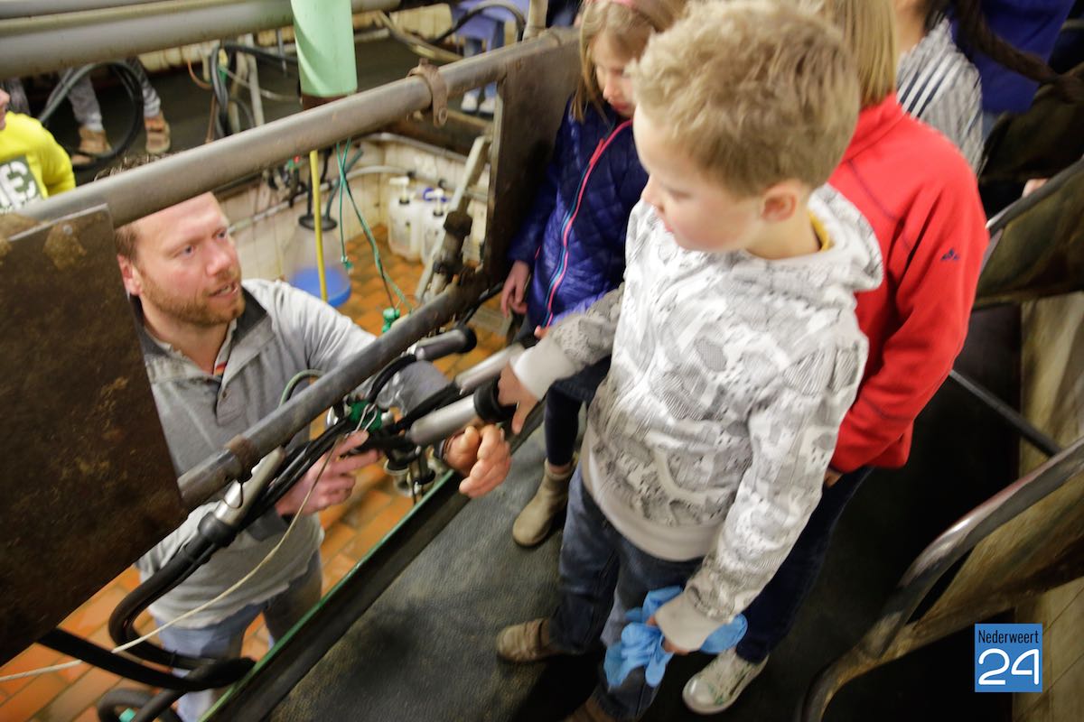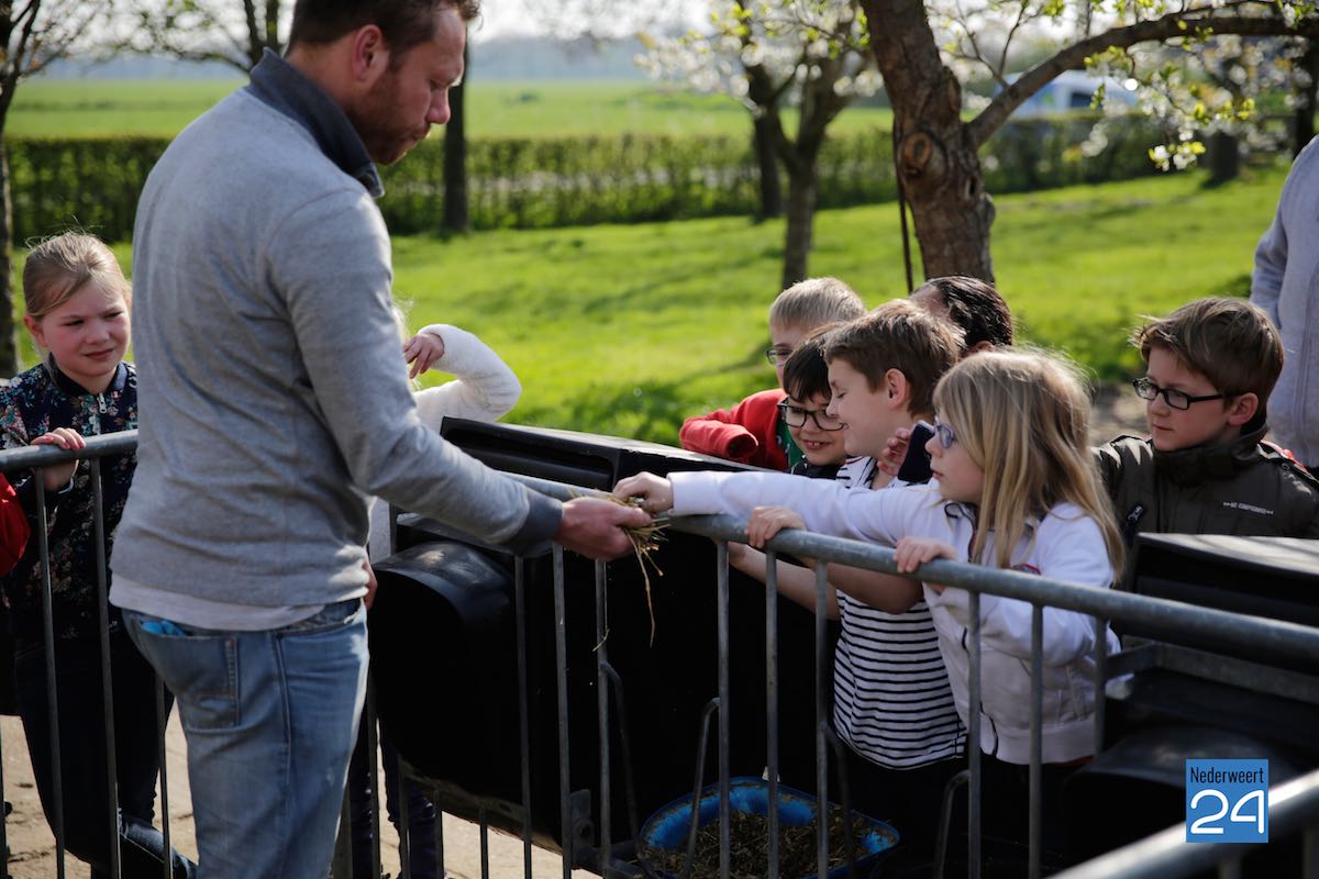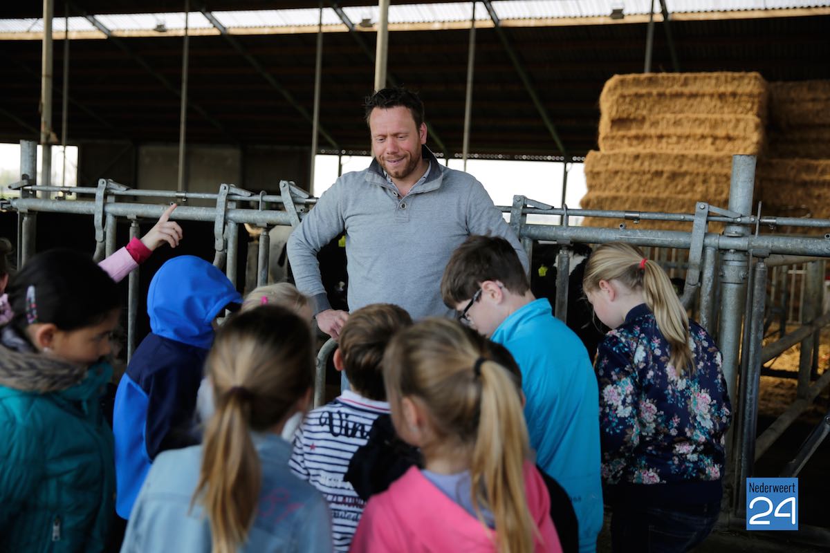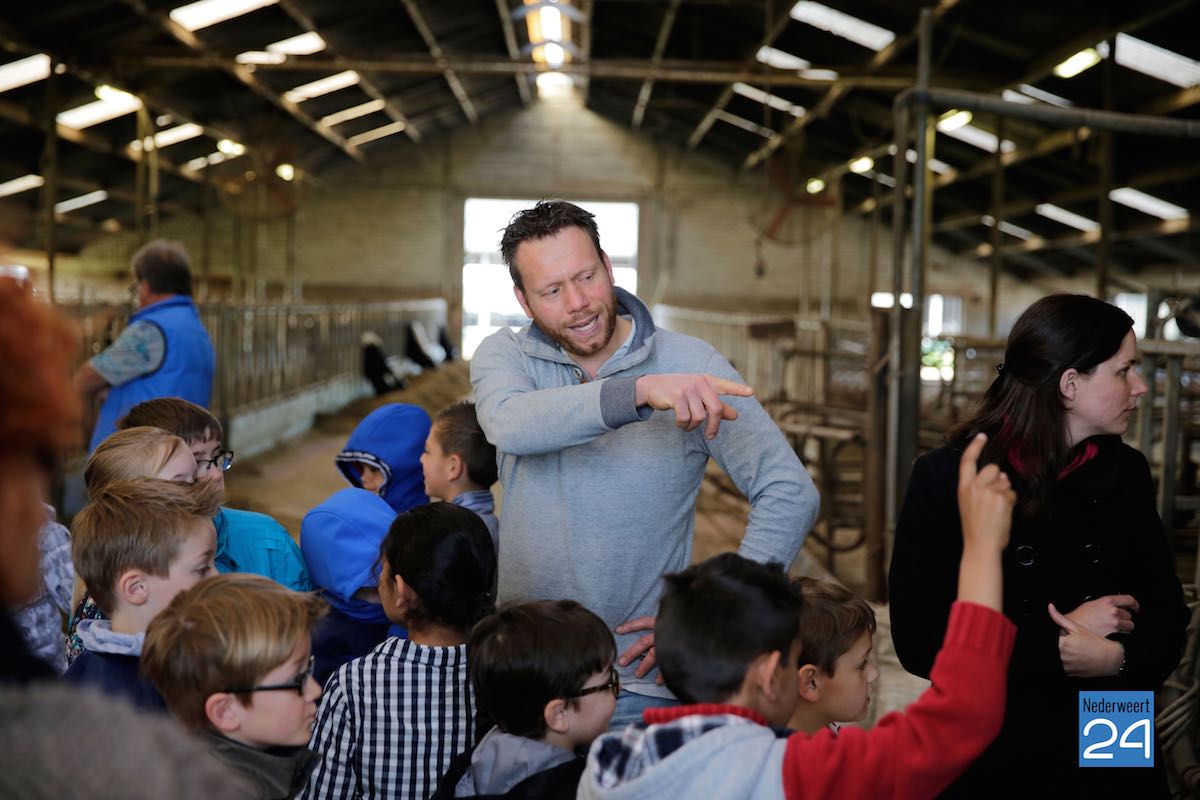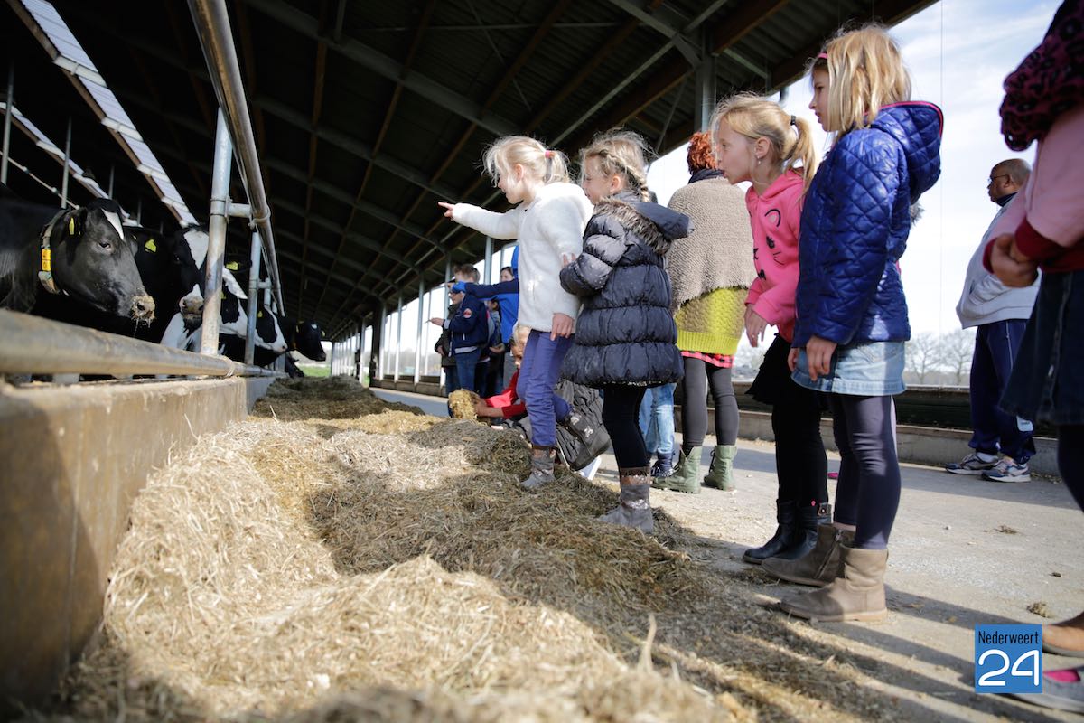 Maandag hebben kinderen van de Montessorischool uit Weert een rondleiding gekregen op de boerderij van Jakob Pustjens uit Nederweert. Samen met hun leraar en ouders mochten de kinderen overal op de boerderij rondneuzen. Ze mochten de kalfjes aaien en gingen kijken bij de zwangere koeien. Jakob vertelde enthousiast over hoe het erop de boerderij aan toegaat en beantwoordde de vele vragen van de kinderen.