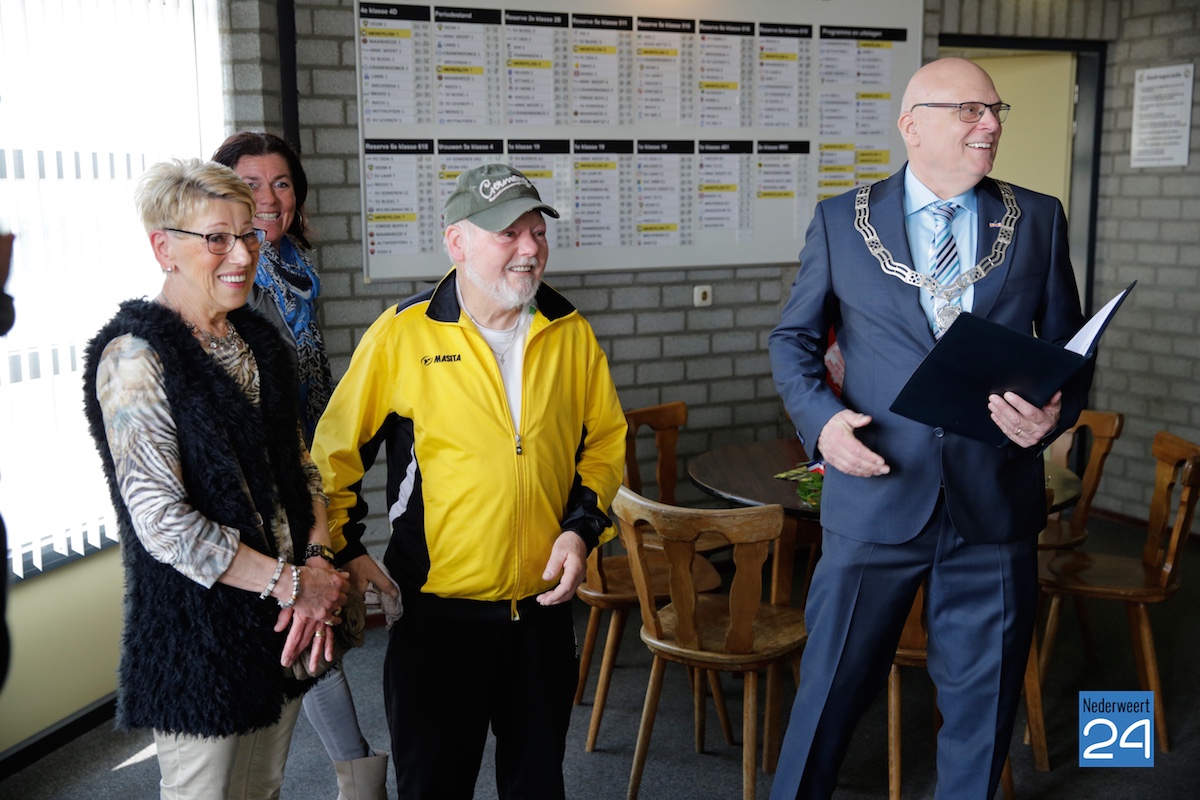 Uitreiking van zes Koninklijke onderscheidingen NederweertDe heer Johan Evers uit Budschop, 75 jaar, Lid in de Orde van Oranje-Nassau De heer Johan Evers is al 35 jaar belangeloos actief voor de Nederweerter gemeenschap. Hij is vanaf 1980 vrijwilliger voor de St. Rochusparochie Budschop-Nederweert. Van 1982 tot 1990 was hij ook lid van het kerkbestuur. In 2003 werd hij opnieuw lid. De heer Evers is al 26 jaar actief voor Vastelaovundjvereiniging de Pinmaekers Ni-jwieërt. Zo was hij Bonte Avond-artiest en deelnemer aan het jaarlijkse Lidjeskonkoer, ceremoniemeester bij de (jaarlijkse) recepties en is hij jurylid voor de grote carnavalsoptocht. Gedurende negen jaar heeft hij zich ingezet als vrijwilliger voor het Kindervakantiewerk Nederweert en acht jaar (2004-2012) was hij bestuurslid en voorzitter van de Ouderenvereniging KBO St. Rochus Budschop Nederweert. Hij was in 2005 een van de initiatiefnemers om te komen tot de oprichting van een dorpsraad. Tot op heden maakt hij deel uit van het bestuur en is hij tevens lid van het dagelijks bestuur van de Stichting Dorpsraad Budschop-Nederweert. Vanaf 2011 is hij actief als bestuurslid en vrijwilliger van de Stichting Waterkrachtcentrale Roeven Nederweert. Bovendien is hij is ook al vele jaren speaker tijdens de intocht van St. Nicolaas in Nederweert en is hij voorzitter van de Stichting Neewieërter Vastelaovundj Lidjes (SNVL).