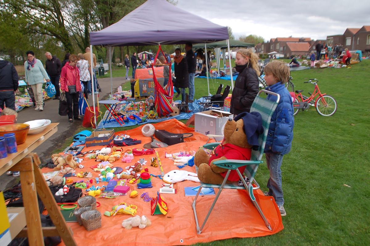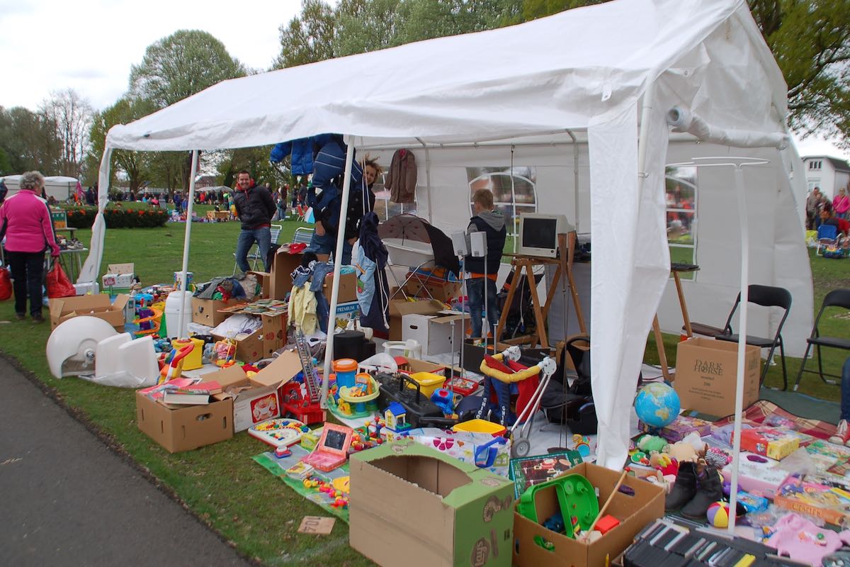 Ruim 150 aanmeldingen voor de vrijmarkt konden mede dankzij het mooie weer rekenen op flink wat belangstelling. Lekker een rondje slenteren langs de uitgestalde koopwaar en natuurlijk een hapje en een drankje.