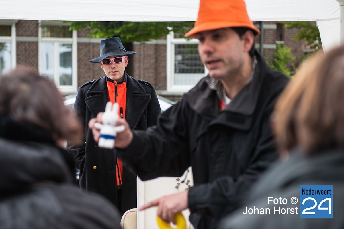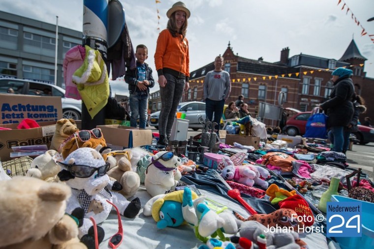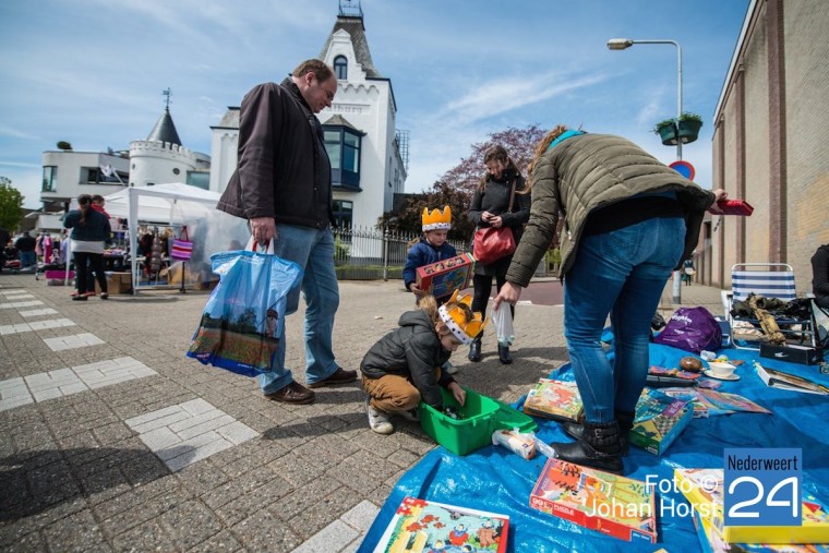 Koningsdag WeertNa een natte en koude en rustige nacht kwam ’s ochtend de vrijmarkt in Weert langzaam weer op gang. Zeker toen ‘s middag het zonnetje doorbrak werden de straten gevuld met kijker, kopers en publiek.