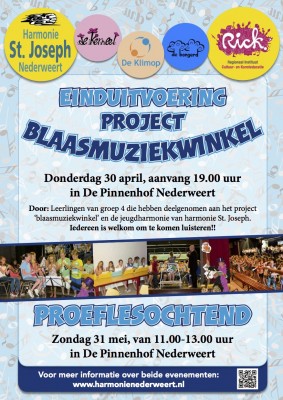 Harmonie St. Joseph Nederweert, het Rick (Regionaal Instituut Cultuur en Kunsteducatie) en drie Nederweerter basisscholen (De Bongerd, De Kerneel en De Klimop) hebben de afgelopen maanden samen het project ‘Blaasmuziekwinkel’ uitgevoerd.