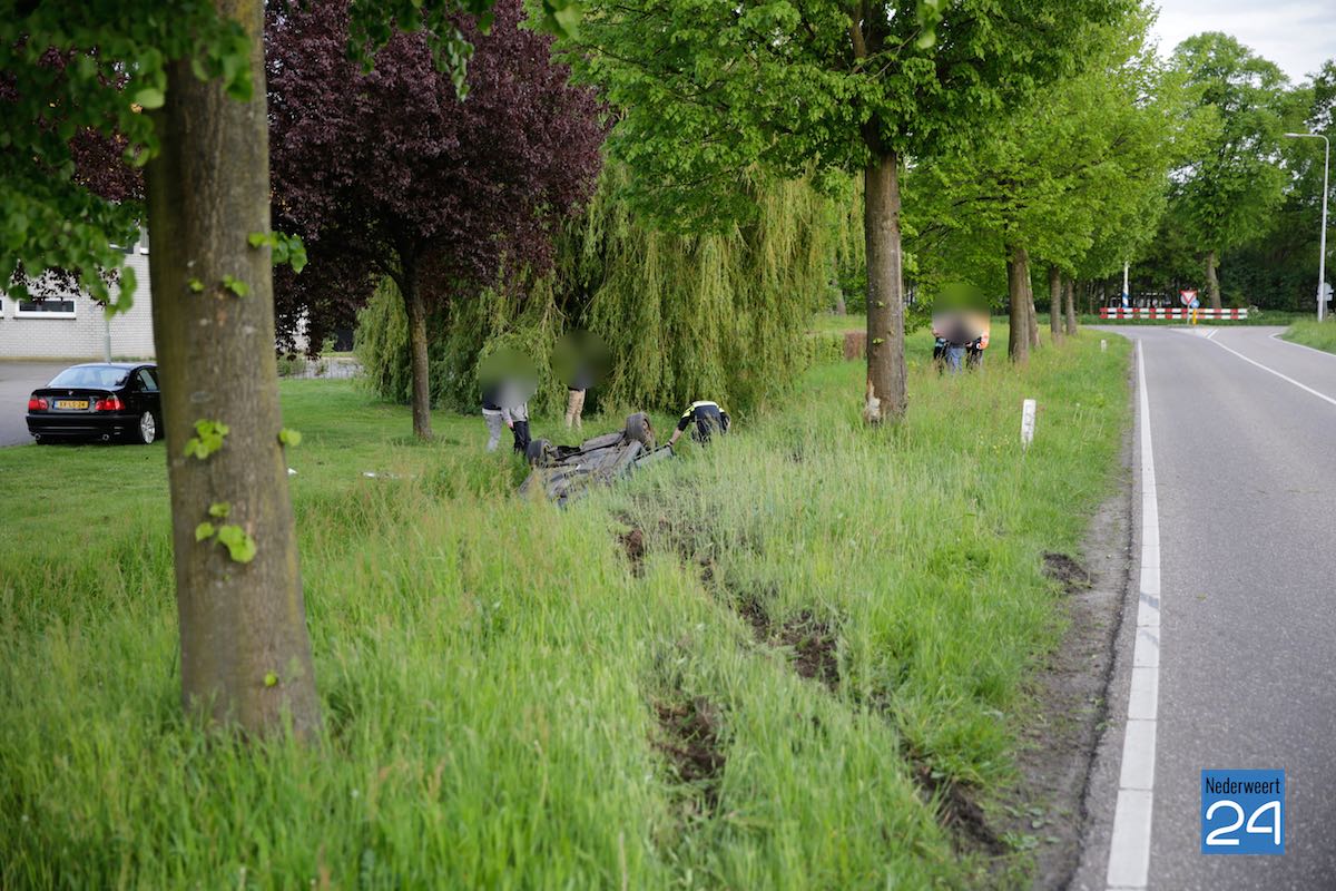 De bestuurder reed vanuit Nederweert richting Weert en is op de Staterweg uit de bocht gevlogen. De auto kwam aan de linkerkant van de weg op de kop in de sloot tot stilstand. De bestuurder kon zelfstandig het voortuig verlaten. Er raakte niemand gewond.