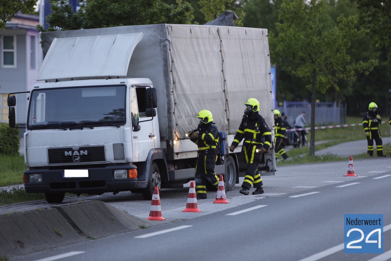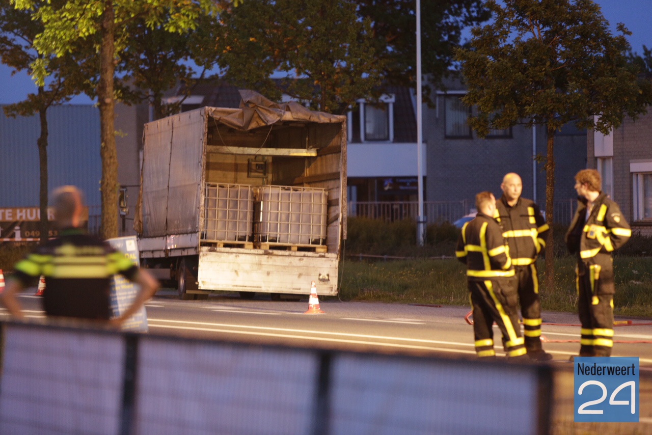 UPDATE 22.10 uur: Experts van de Landelijke Faciliteit Ontmantelen (LFO) zijn opgeroepen ter ondersteuning. In de vrachtauto bevinden zich 7 vaten met nog onbekende inhoud.