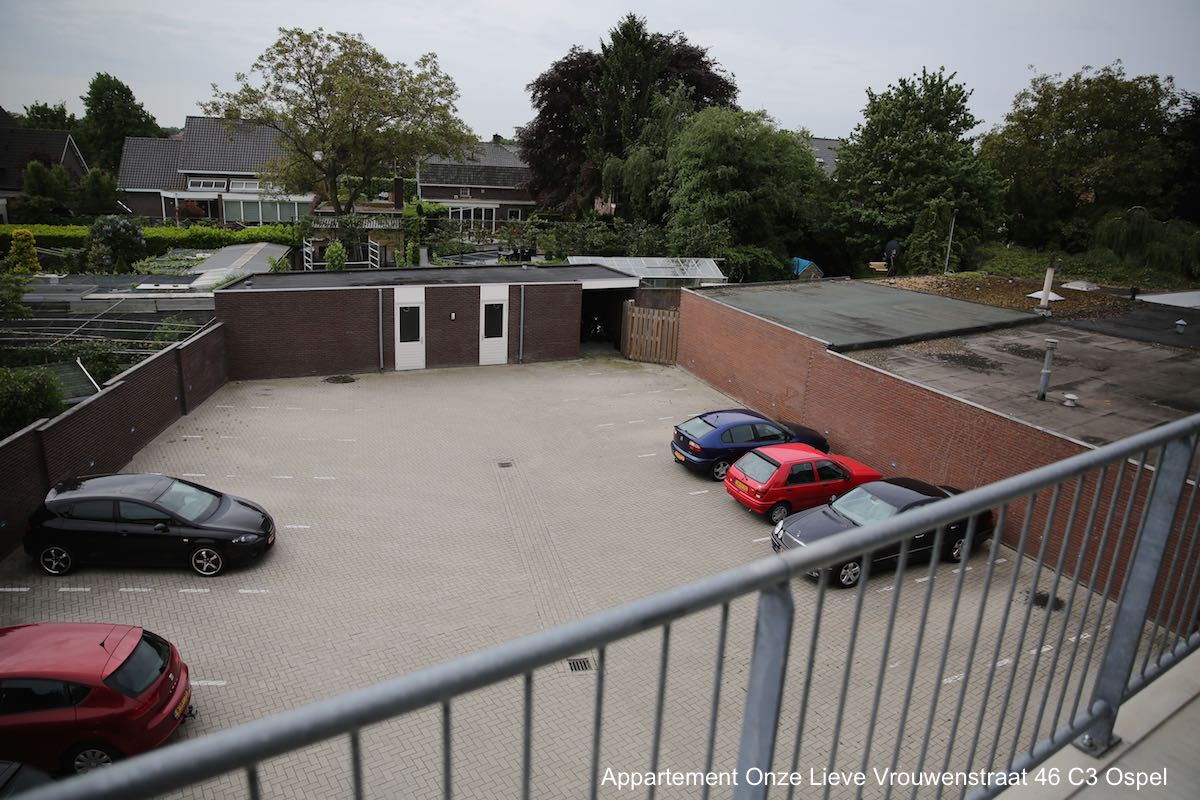 Bij het appartement behoort een eigen genummerde parkeerplaats die zich op een binnenplaats aan de achterkant van het appartementencomplex bevindt. Medio 2015 wordt deze binnenplaats voorzien van een toegangspoort met handzender. Op de parkeerplaats is ook een gezamenlijke berging voor fietsen e.d.