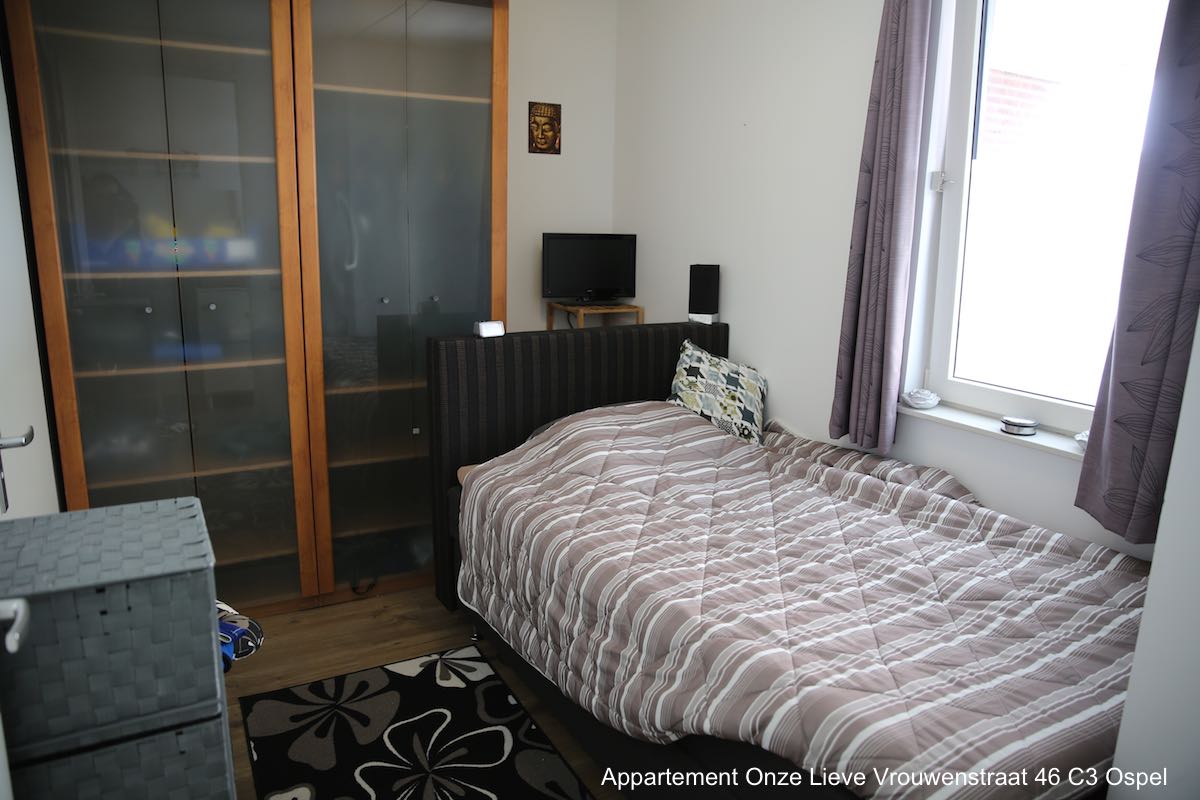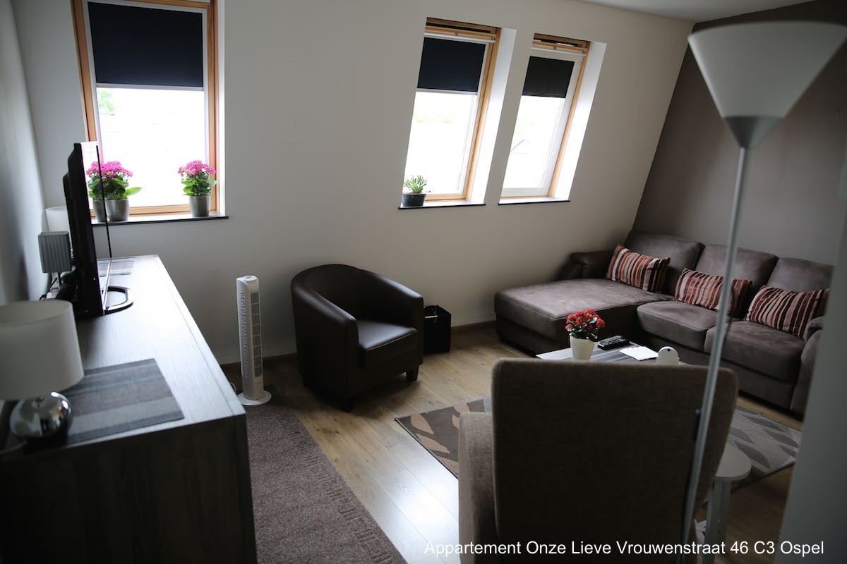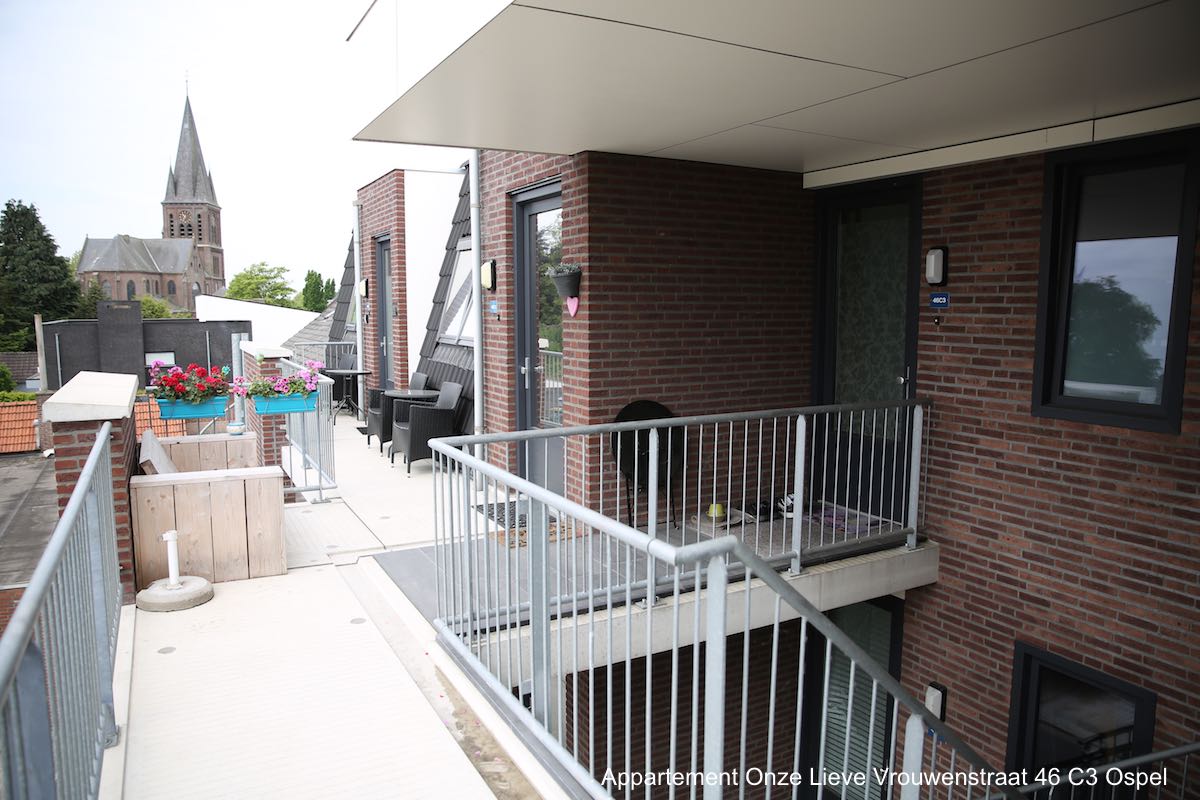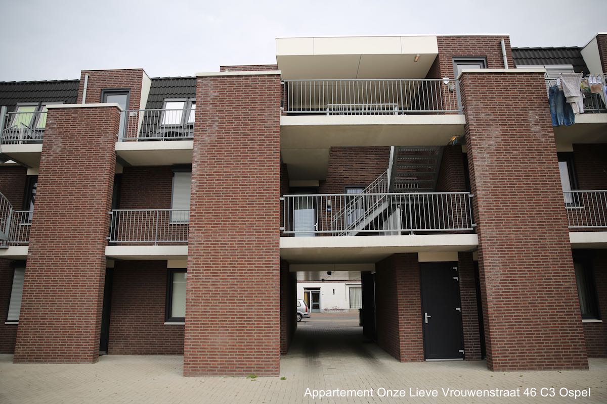 In Ospel is een appartement met 1 slaapkamer (bouwjaar 2010), gelegen aan de Onze Lieve Vrouwenstraat 46 C3, te koop. Het appartement bevindt zich op de tweede verdieping van een appartementencomplex en is geheel voorzien van vloerverwarming en duurzame laminaat. De badkamer is voorzien van douche en vaste wastafel met spiegel en is helemaal betegeld. Het toilet is voorzien van een hangend toilet, geheel betegeld en heeft een fonteintje.