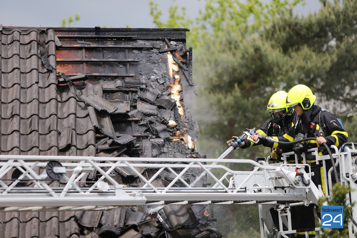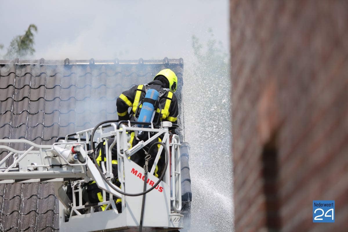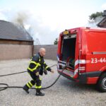 Hij heeft nog geprobeerd het vuur te blussen met een tuinslang. Toen dit niet leek te lukken heeft hij 112 gebeld. De brandweer was snel ter plaatse en heeft het vuur gedoofd. De brandweer heeft nog wel even werk om het vuur, dat in de spouw zit, helemaal uit te krijgen. De Laarderweg is afgesloten.