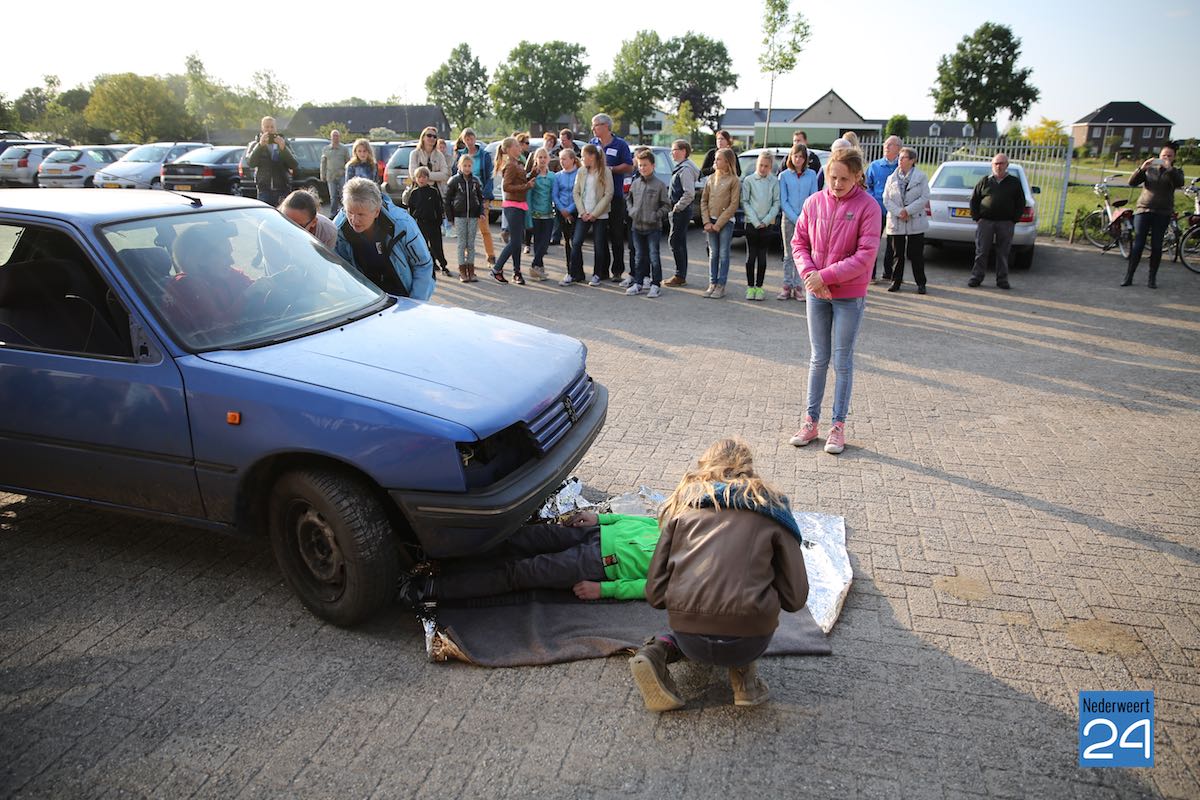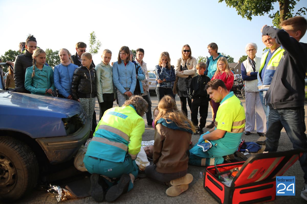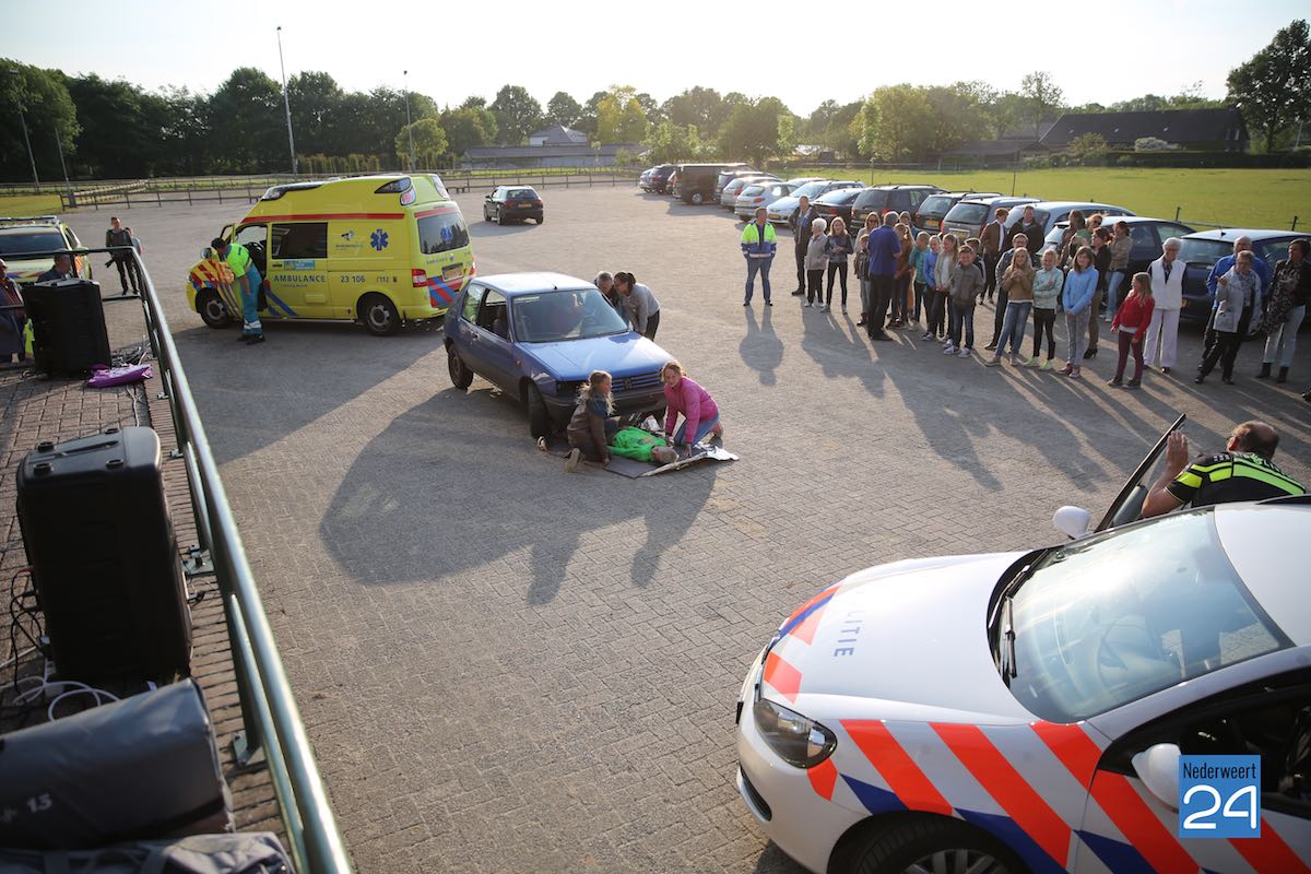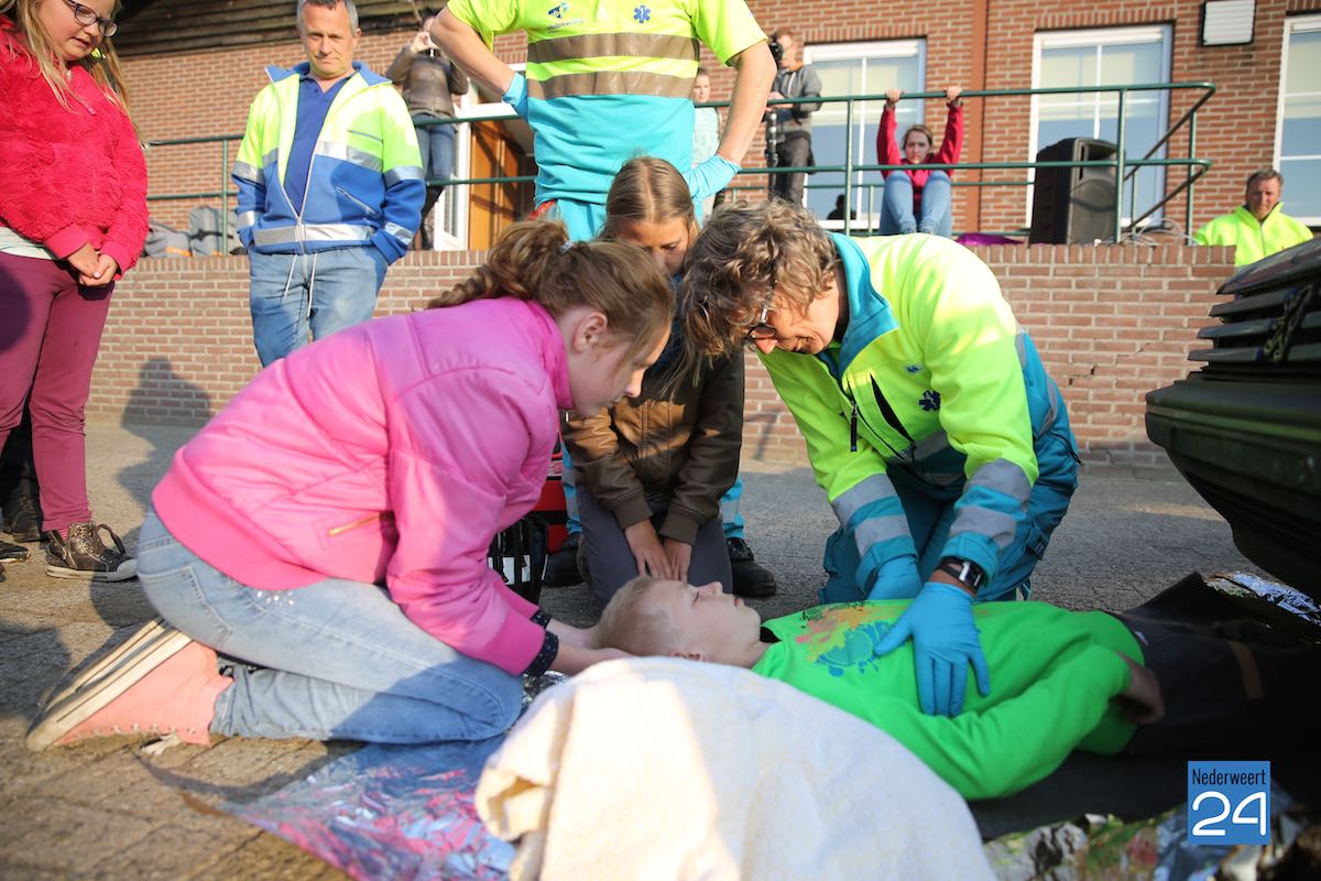 Voorafgaande aan de diploma uitreiking liet de EHBO-jeugd van 11 tot 12 jaar in een oefening zien wat ze allemaal geleerd hadden. Een kind was aangereden door een auto. Zowel het kind als de bestuurder van de auto waren gewond en werden snel, bekwaam en volgens de juiste methode benaderd en behandeld door de jeugdleden. De verwondingen waren dusdanig dat er twee ambulances werden opgeroepen. Samen met het ambulancepersoneel werden de slachtoffers gestabiliseerd en in de ambulance gelegd. De politie was ter plaats om het verkeer te regelen en eventuele getuigen van het ongeval te horen.