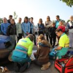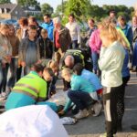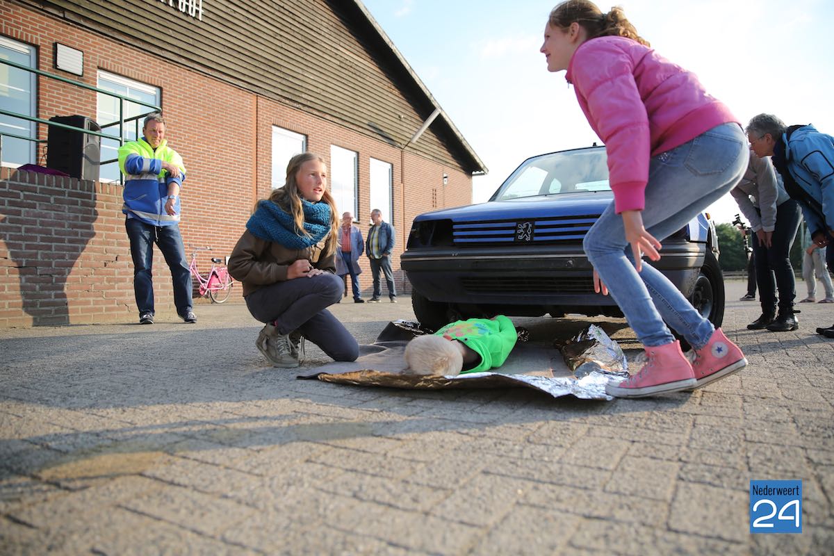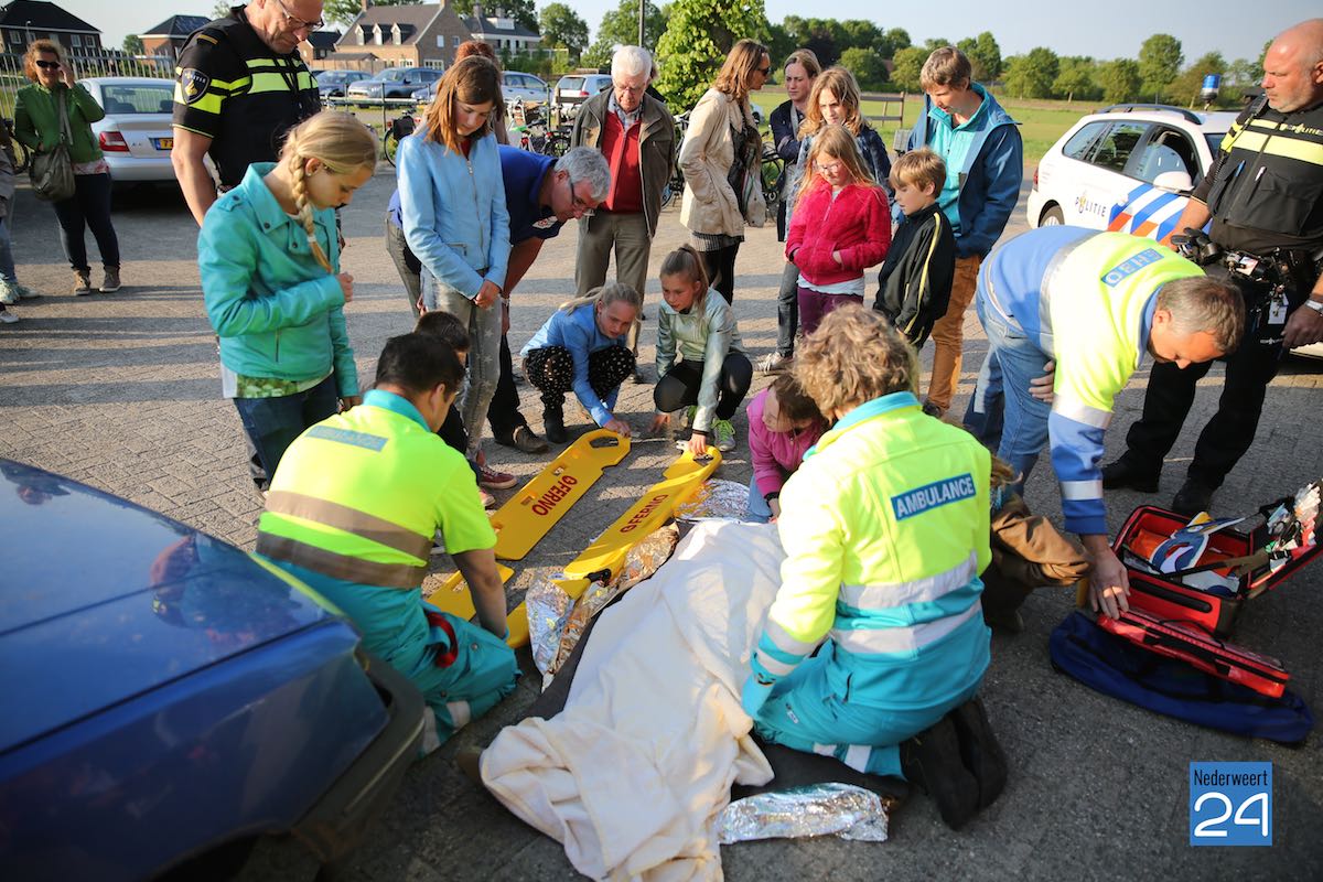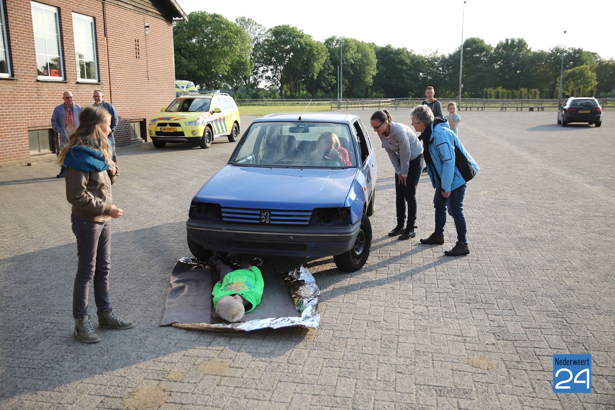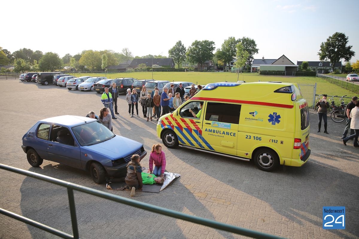 Voorafgaande aan de diploma uitreiking liet de EHBO-jeugd van 11 tot 12 jaar in een oefening zien wat ze allemaal geleerd hadden. Een kind was aangereden door een auto. Zowel het kind als de bestuurder van de auto waren gewond en werden snel, bekwaam en volgens de juiste methode benaderd en behandeld door de jeugdleden. De verwondingen waren dusdanig dat er twee ambulances werden opgeroepen. Samen met het ambulancepersoneel werden de slachtoffers gestabiliseerd en in de ambulance gelegd. De politie was ter plaats om het verkeer te regelen en eventuele getuigen van het ongeval te horen.