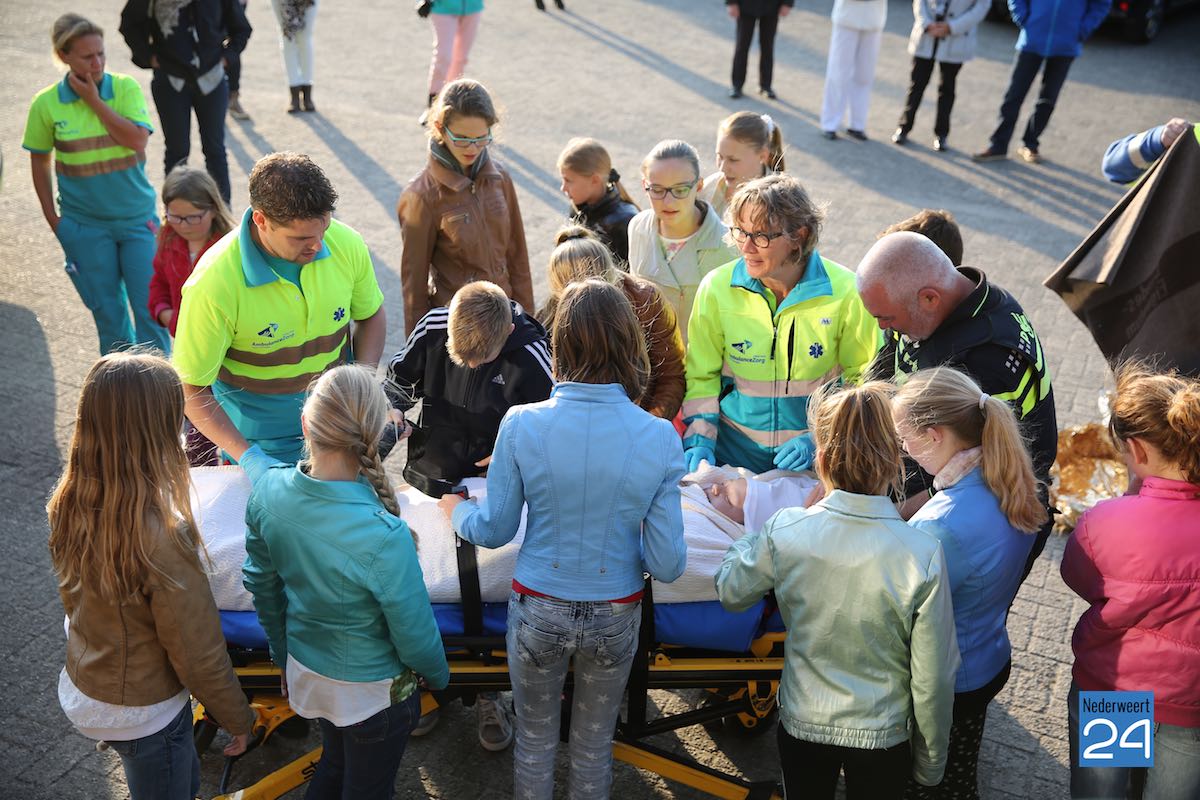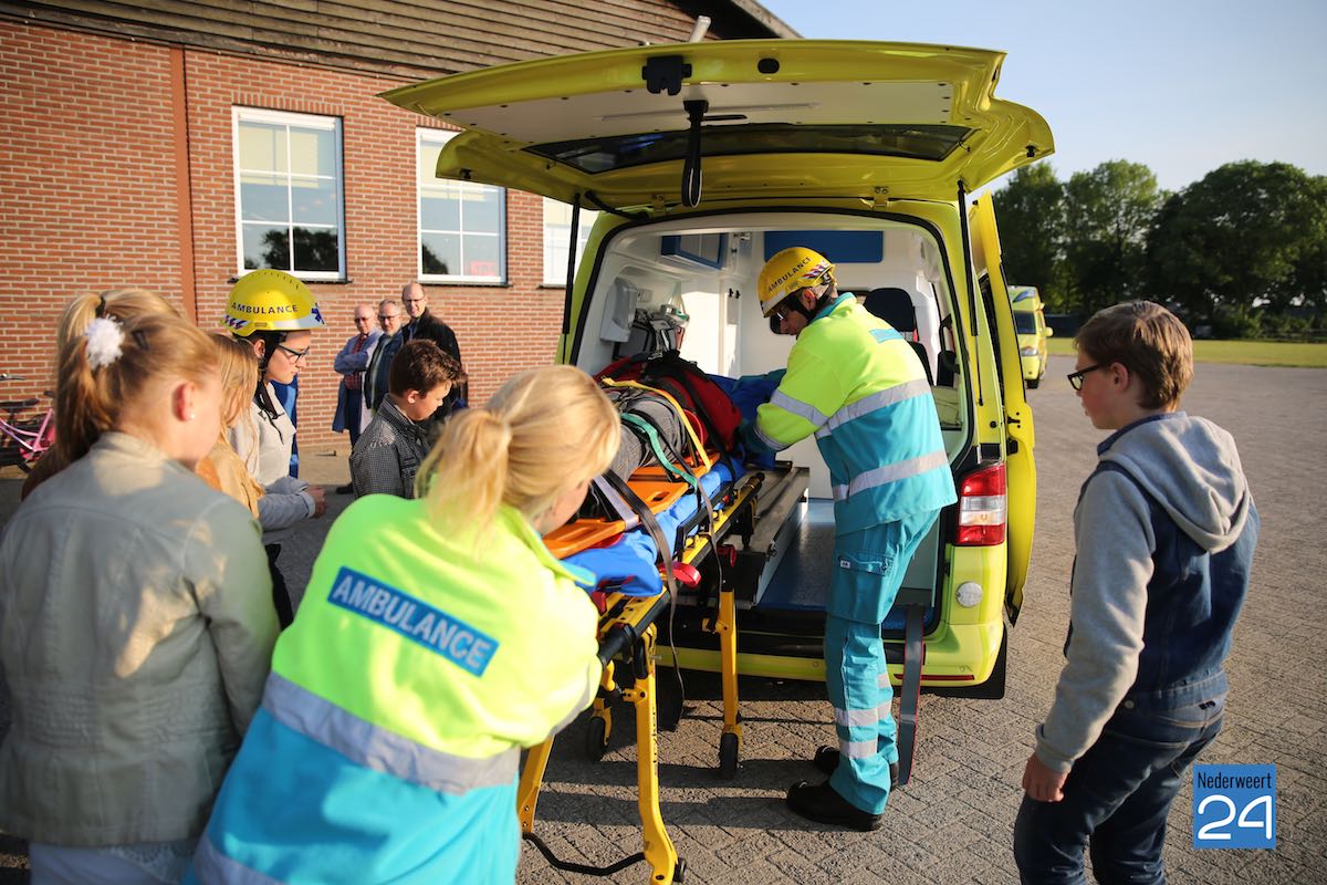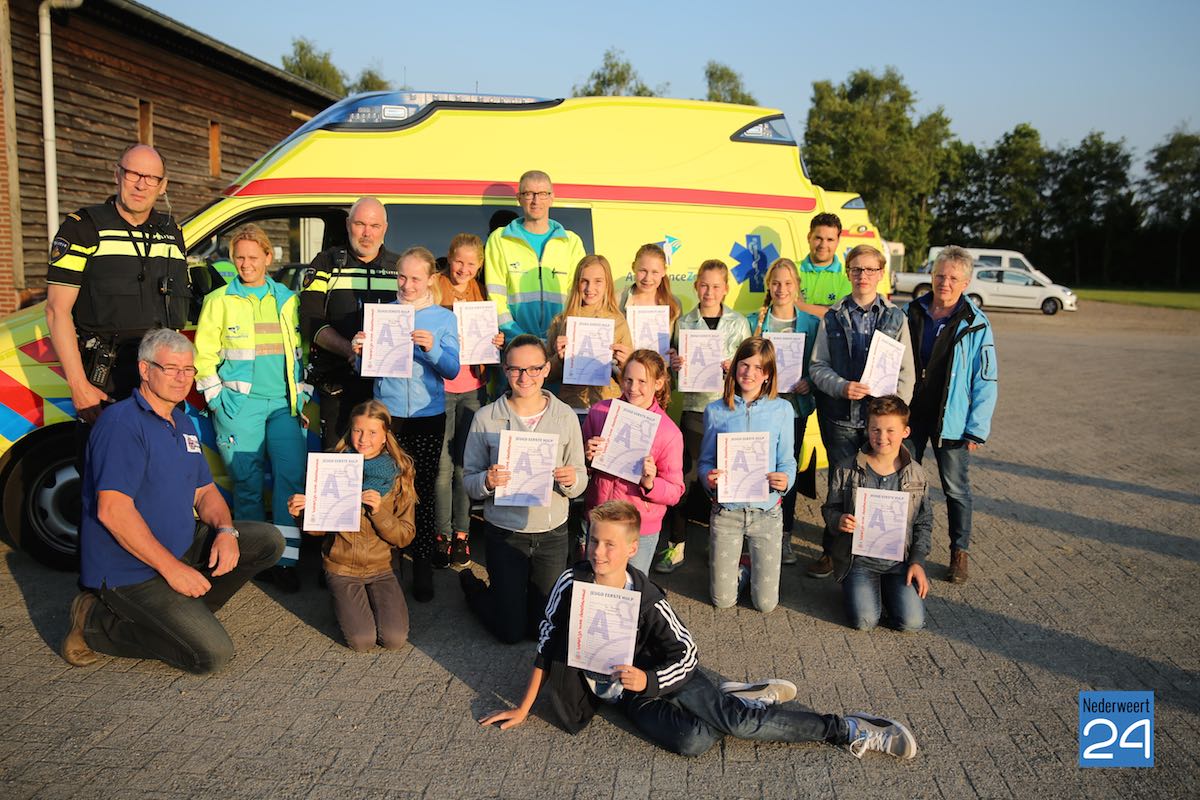 Toen de slachtoffers in de ambulance lagen was het tijd voor de diploma’s. Eén voor één kregen ze het felbegeerde diploma en mochten ze op de foto. Hard gewerkt en dus tijd voor limonade.