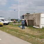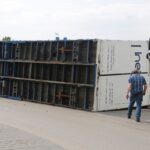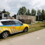 Vrijdagmiddag is een container van een vrachtwagen gevallen op de rotonde Kempenweg – Kazernelaan in Weert.