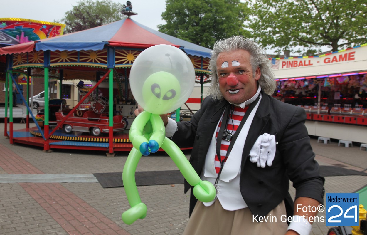 Zaterdagmiddag was het dan eindelijk zo ver. Om 14.00 uur werd de kermis in Nederweert-Eind geopend. Clown Desalles was er ook bij. hij zorgde voor veel ballonnen, maar voor vooral veel plezier.
