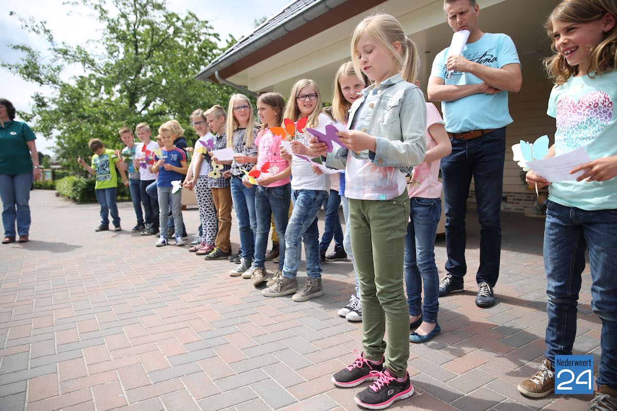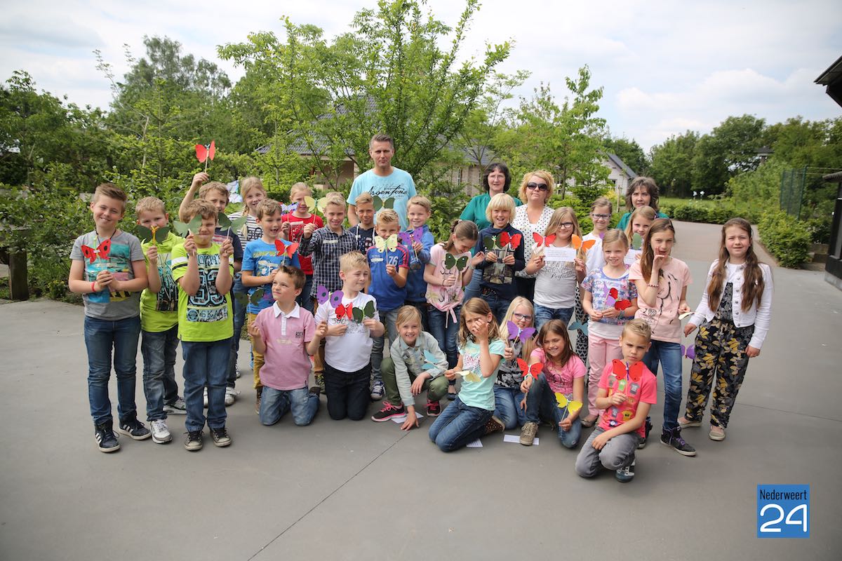De leerlingen van groep 5 van basisschool De Klimop hebben woensdagmorgen het Vlinderpaât gelopen en een leerzame morgen gehad op Zorgboerderij Bosserhof in Nederweert.