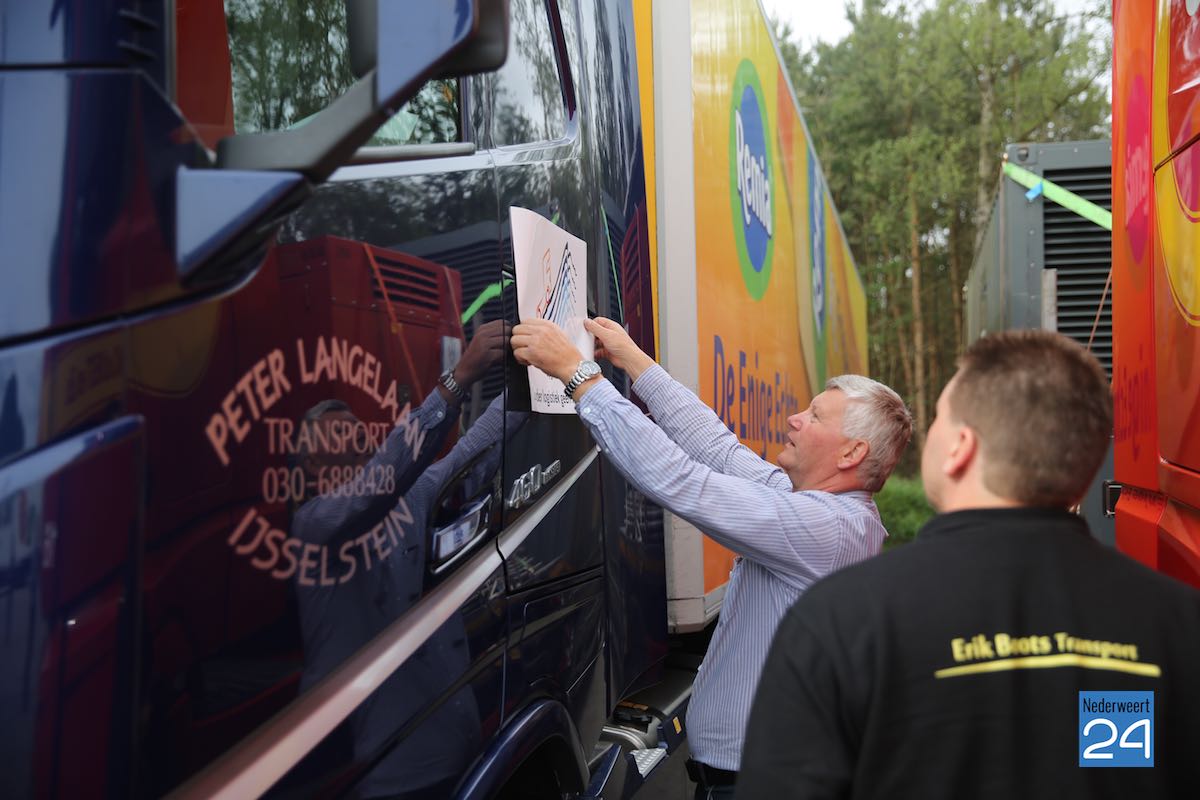 Rogé is vanmorgen met zijn zoontje Teun van 2,5 jaar naar Restaurant de Wildenberg gereden. Onderweg was het lachen en plezier maar het afscheid was toch met een traan. Hij is bijna 1,5 week weg en dat vinden zoonlief en papa wel moeilijk. “Maar het is voor een goed doel” zegt Rogé tegen zijn vriend Rob van Veldhoven net voordat hij plaatsneemt achter het stuur. Rob is eigenaar van het grafisch ontwerpbureau Typerend en heeft de ontwerpen van een paar grote stickers gemaakt. Hij wenst zijn vriend Rogé en natuurlijk alle truckchauffeurs en bijrijders een goede reis.