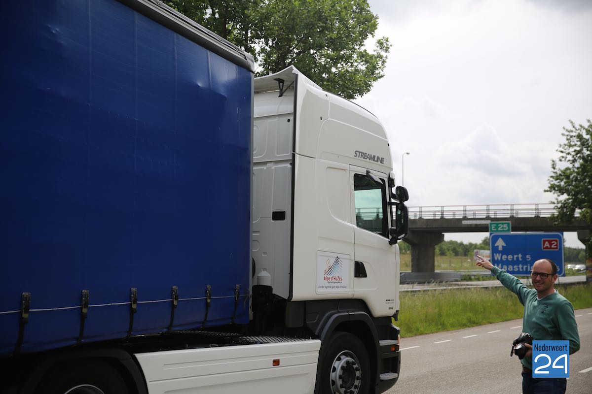 Rogé Megens (40) die in Nederweert woont rijdt dit jaar voor de tweede keer mee. Hij is zelfstandig adviseur in de logistiek. “Tijdens mijn studies werkte ik ’s avonds, ’s nachts en in de weekeinden als vrachtwagenchauffeur. Het is prachtig om te zien dat alle chauffeurs van vorig jaar er weer bij zijn”, vertelt Rogé. “Een mooi weerzien voor een mooi doel”. De groep chauffeurs is een zeer divers gezelschap van beroepschauffeurs, zelfstandig ondernemers, managers en medewerkers werkzaam in de logistiek. De auto’s worden voorzien van herkenbare stickers van Alpe d’HuZes en na de gezamenlijk instructie en uitleg voor onderweg is het tijd om te vertrekken. Op zaterdagavond 30 mei zal het konvooi arriveren in Alpe d’Huez en worden de spullen gelost. Aansluitend worden alle voorbereidingen en opbouwwerkzaamheden voor het event gestart.
