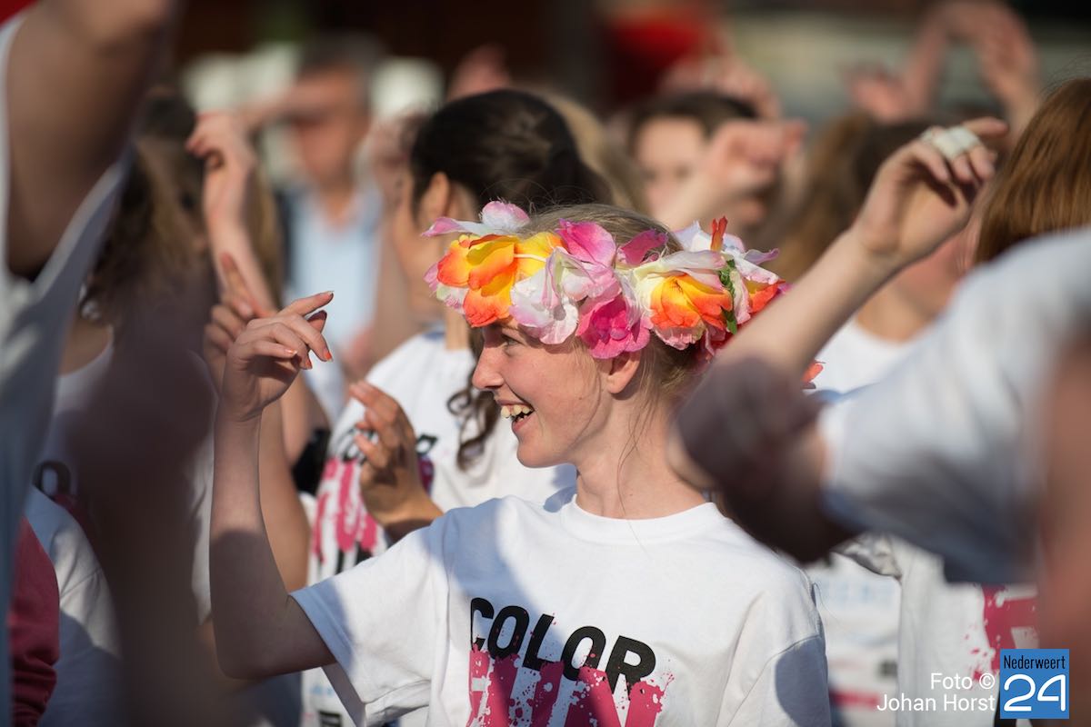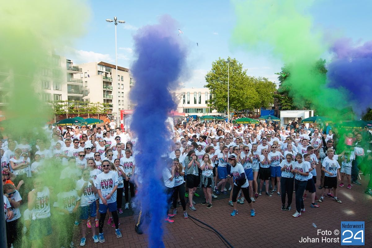 Dansschool Fresh verzorgde op het podium een warming-up waarna burgemeester Heijmans, samen met Miss Teen of Limburg 2015, het officiële startschot mocht geven. De lopers liepen over de binnenste singel en werden tijdens het lopen bestoven met kleuren. Naarmate de tocht vorderde werd het een kleurrijker geheel.
