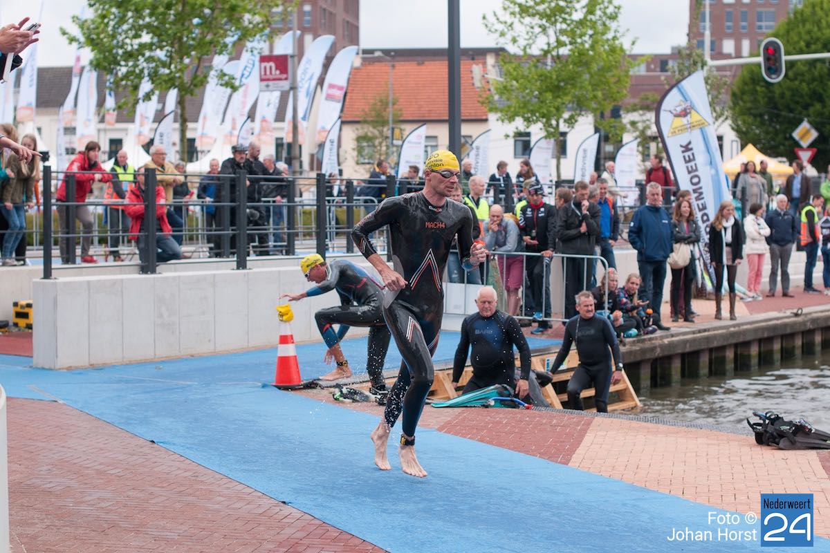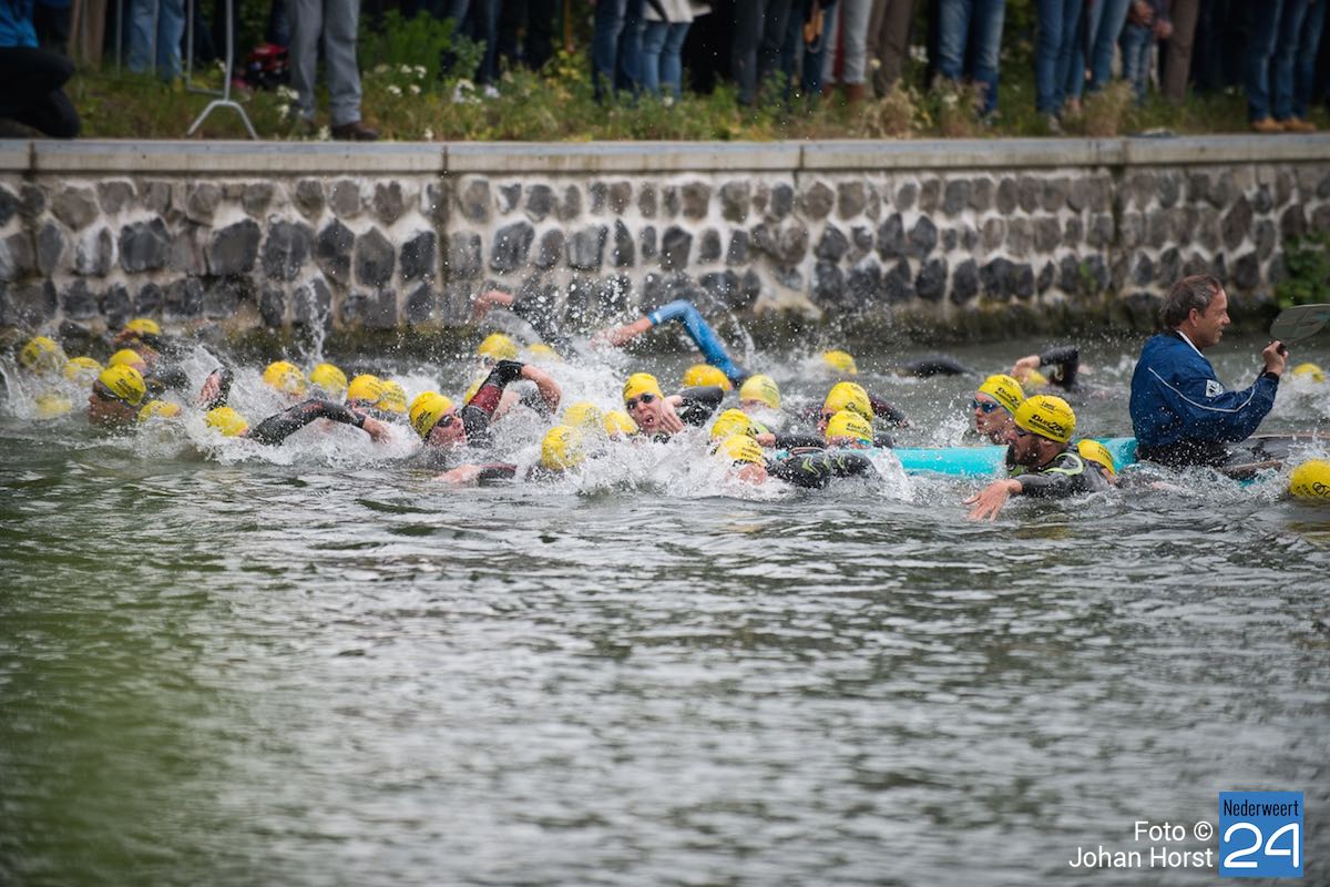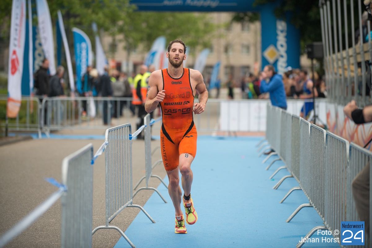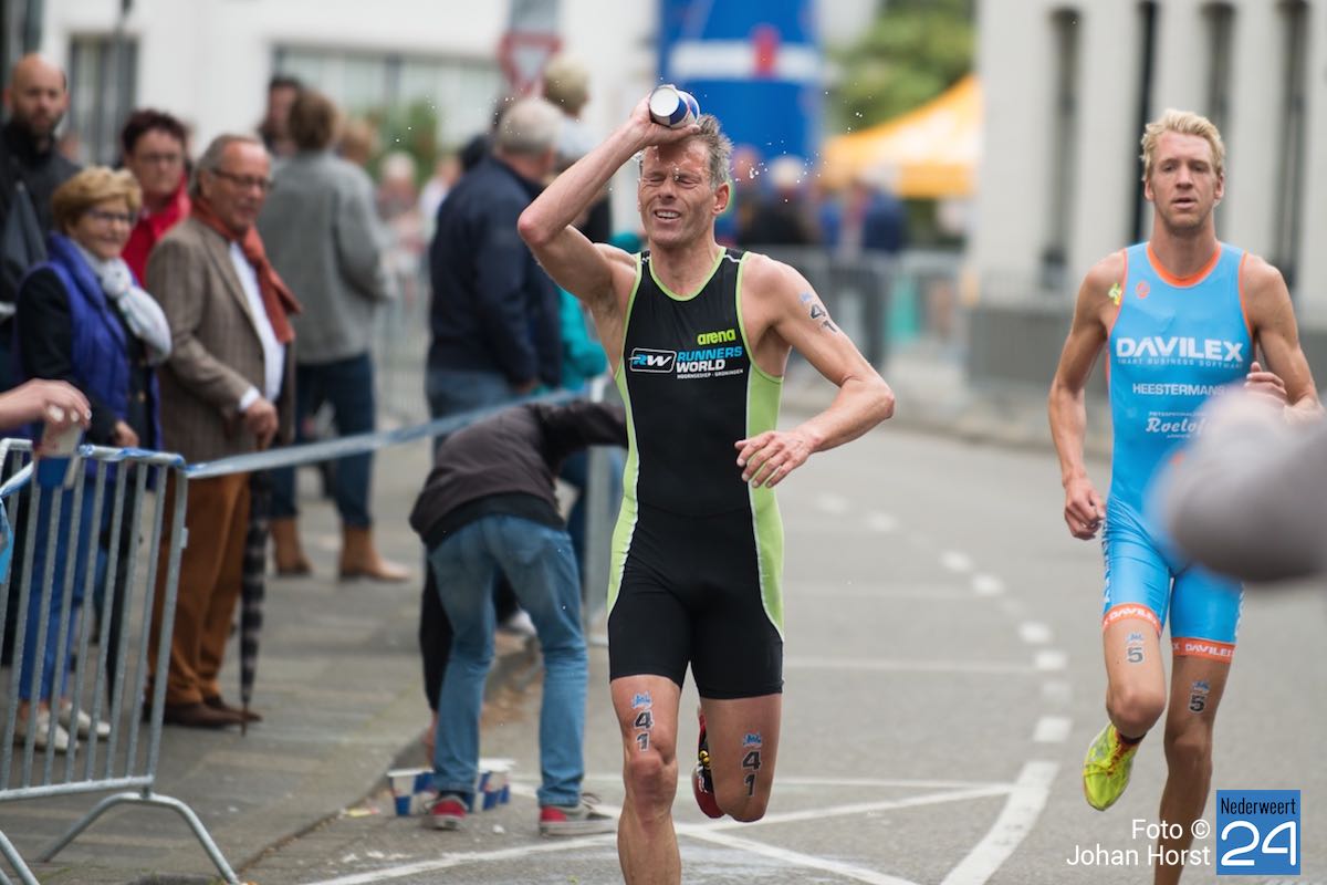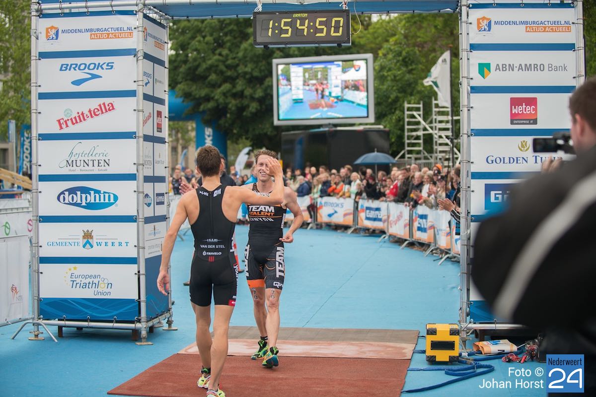 Vandaag waren de Nederlands Kampioenschap Olympische Afstanden voor dames en heren tijdens de Stadstriatlon in Weert. Winnaar bij de heren was Marco van de Stel uit Sittard in een totaal tijd van 01:53:50. Een sportieve winnaar die aan de finish wachtte op zijn mede atleten om samen naar het ereschavot te gaan. Martijn Dekker uit Geleen werd tweede, gevolgd door Marco Akershoek uit Ouddorp.