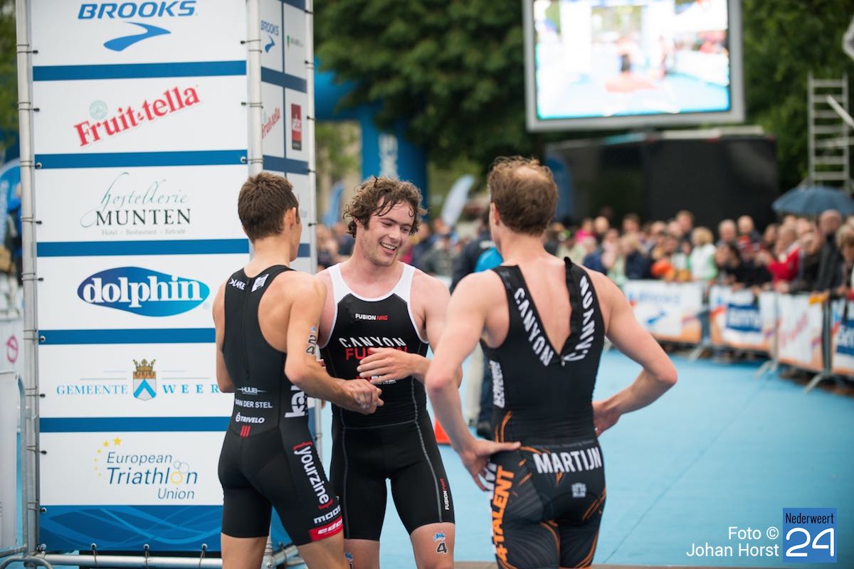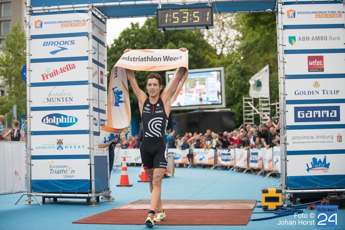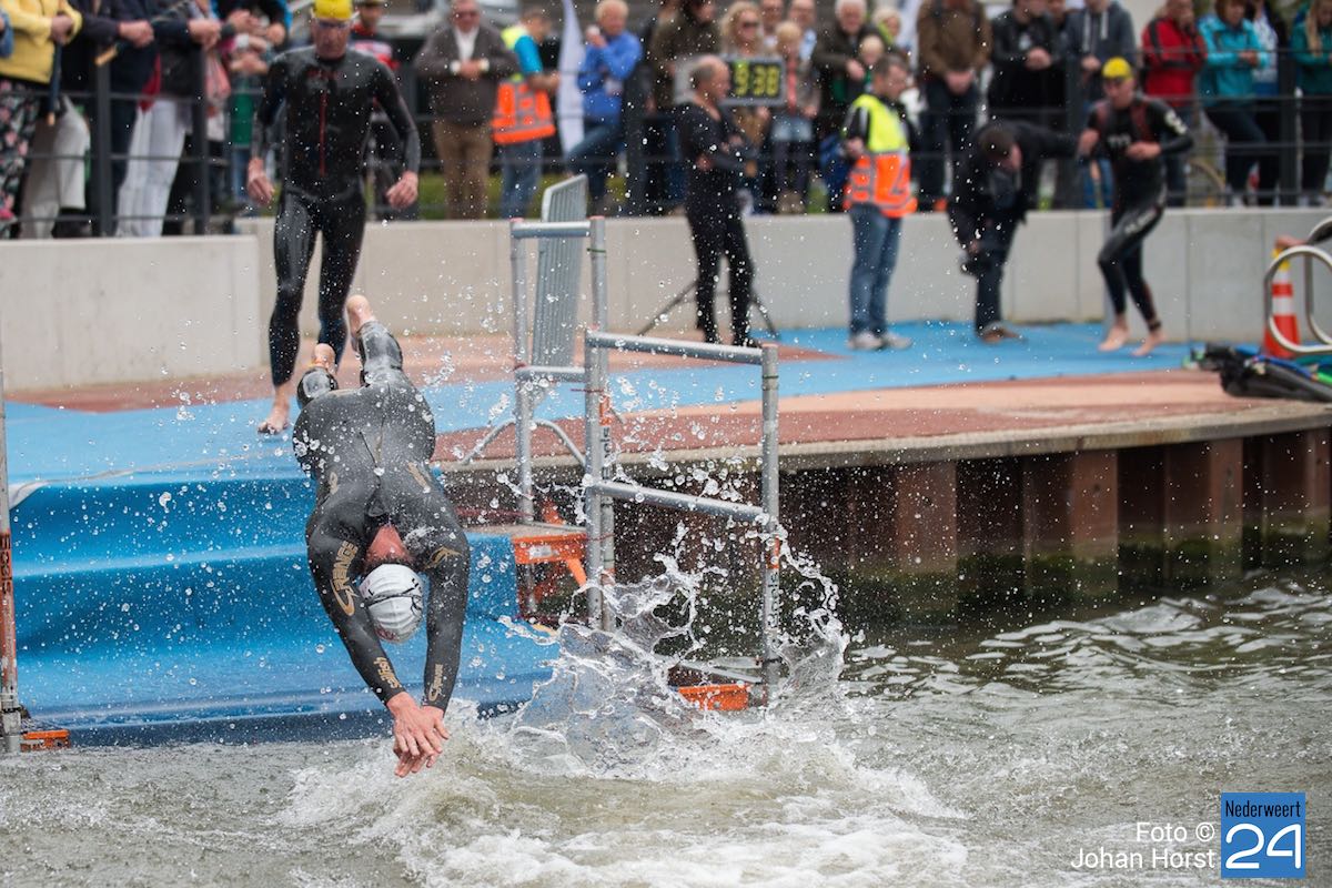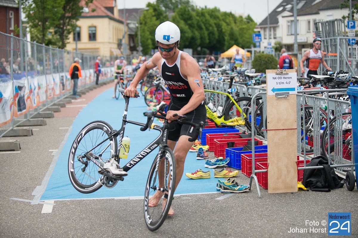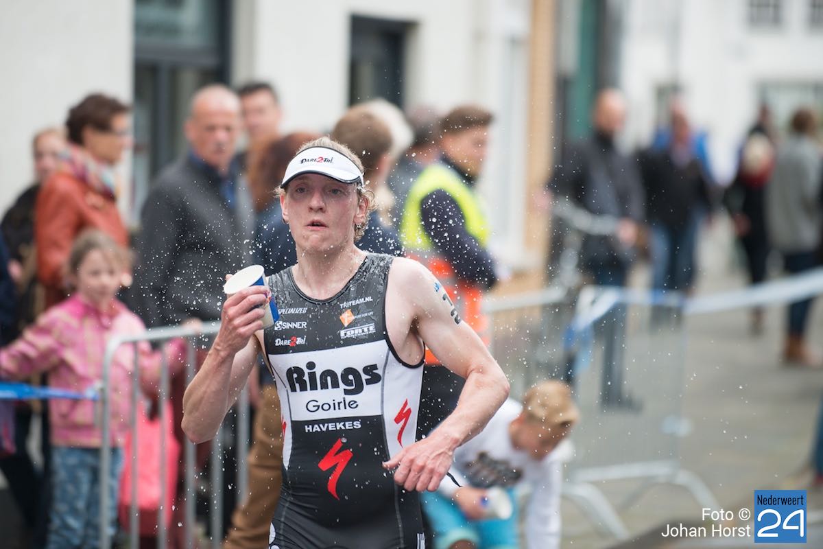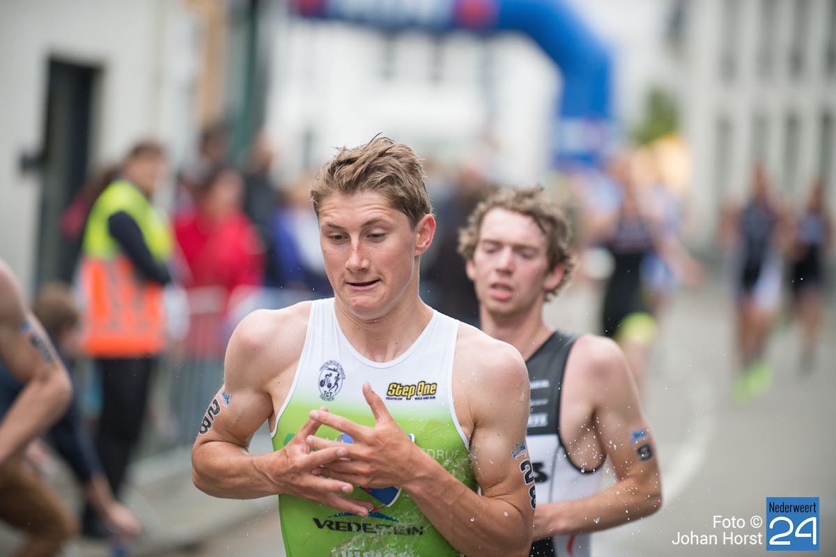 Vandaag waren de Nederlands Kampioenschap Olympische Afstanden voor dames en heren tijdens de Stadstriatlon in Weert. Winnaar bij de heren was Marco van de Stel uit Sittard in een totaal tijd van 01:53:50. Een sportieve winnaar die aan de finish wachtte op zijn mede atleten om samen naar het ereschavot te gaan. Martijn Dekker uit Geleen werd tweede, gevolgd door Marco Akershoek uit Ouddorp.