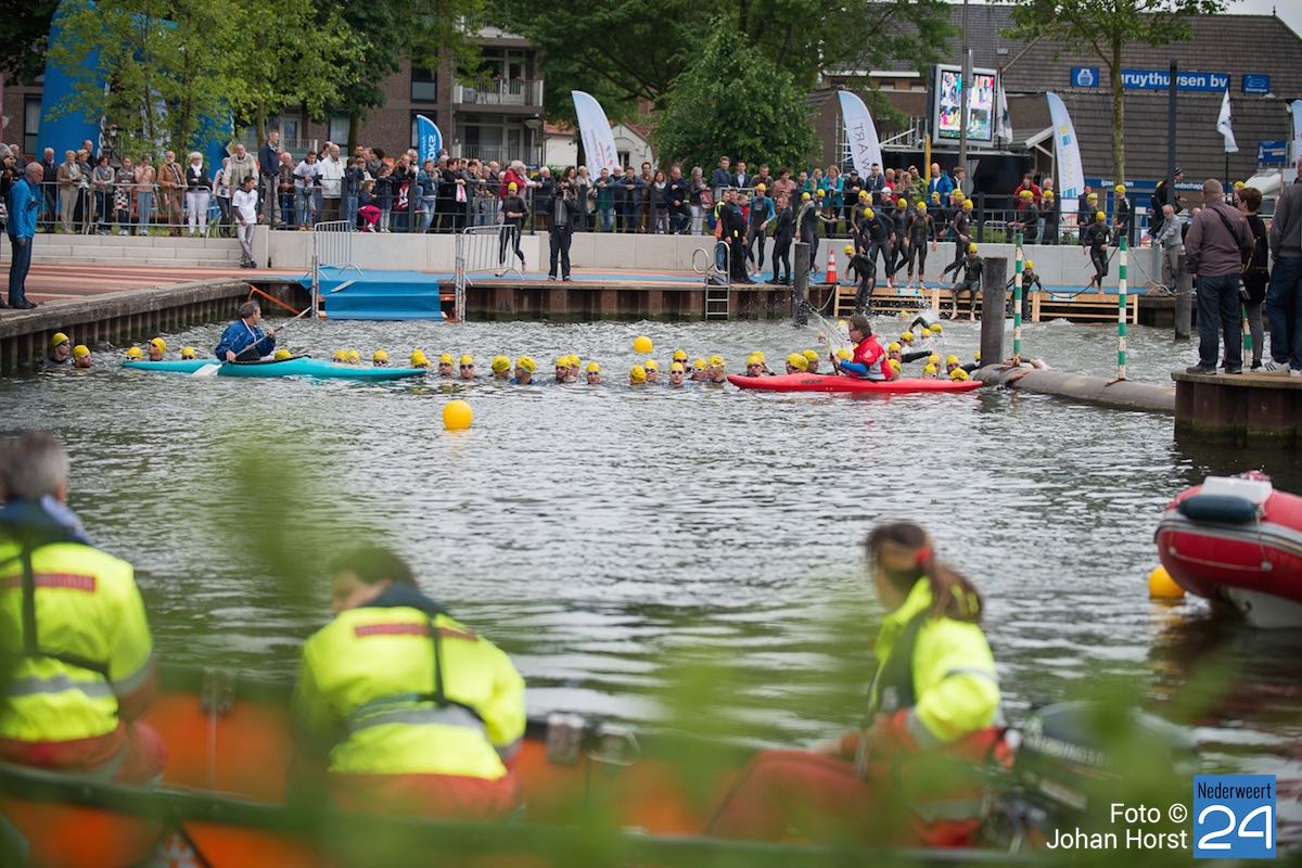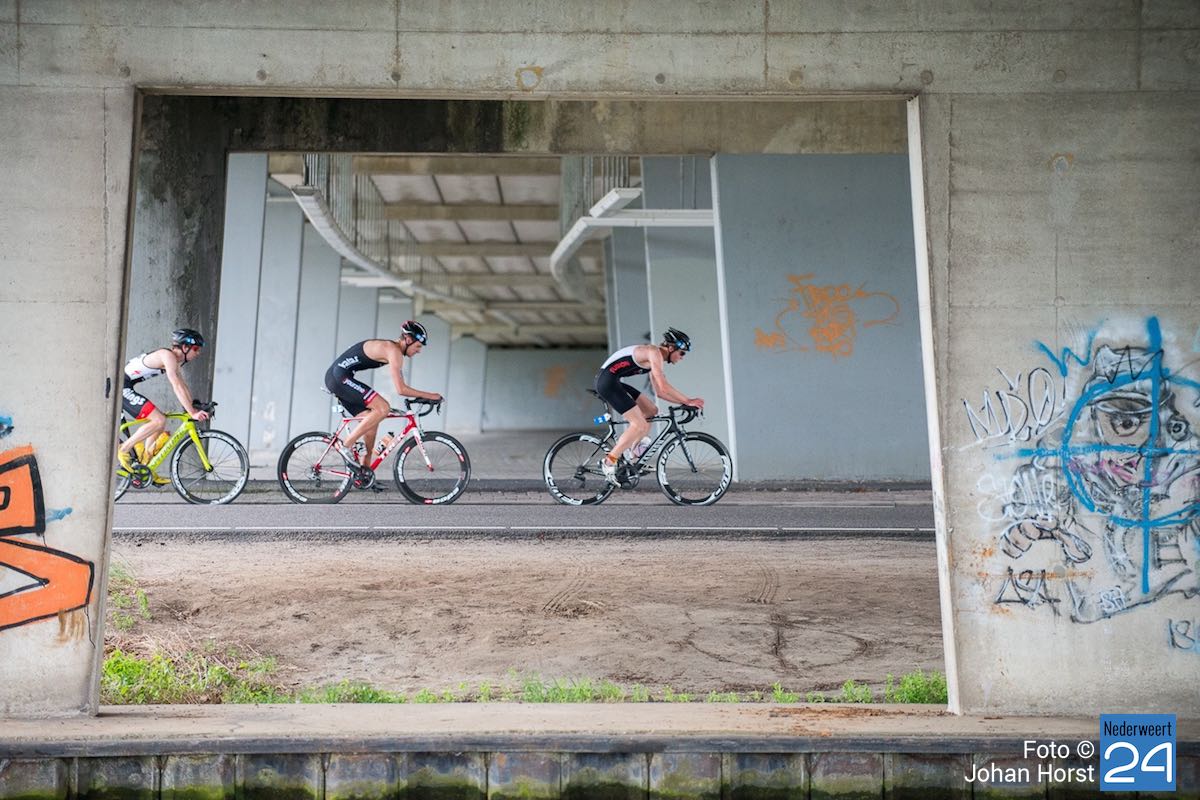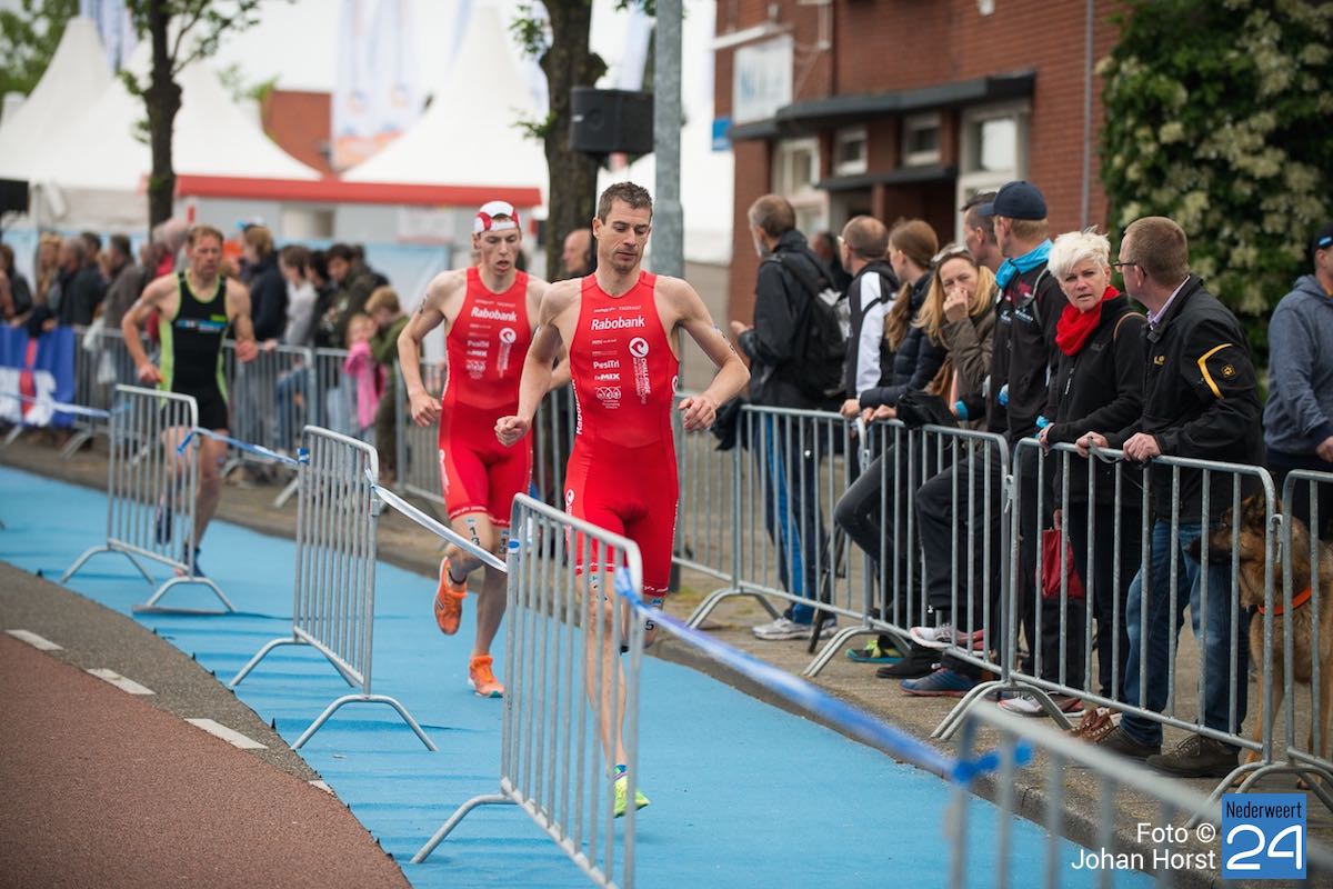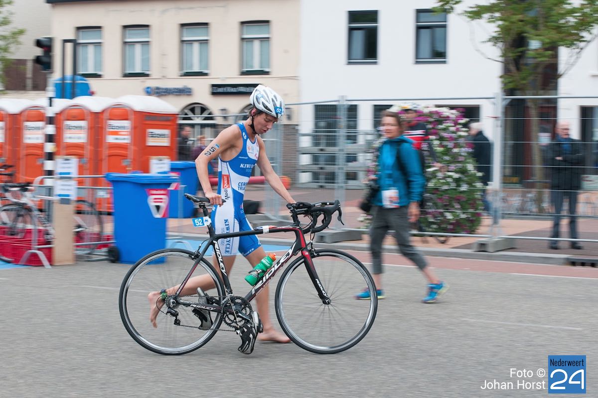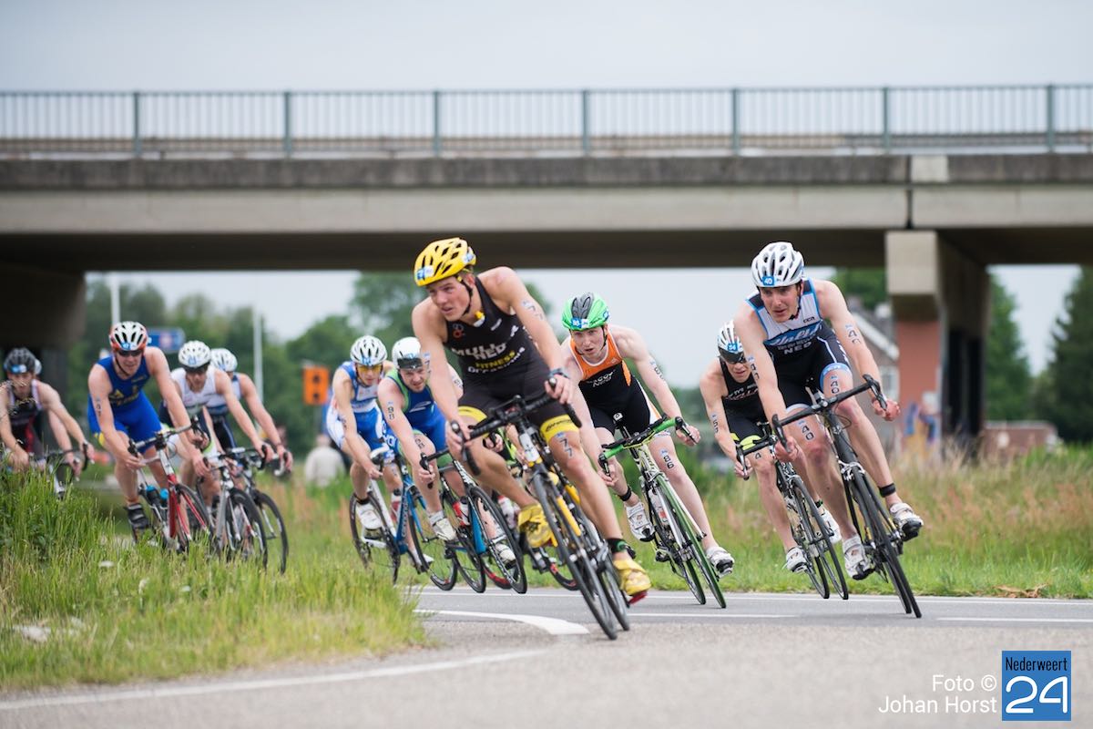 Vandaag waren de Nederlands Kampioenschap Olympische Afstanden voor dames en heren tijdens de Stadstriatlon in Weert. Winnaar bij de heren was Marco van de Stel uit Sittard in een totaal tijd van 01:53:50. Een sportieve winnaar die aan de finish wachtte op zijn mede atleten om samen naar het ereschavot te gaan. Martijn Dekker uit Geleen werd tweede, gevolgd door Marco Akershoek uit Ouddorp.
