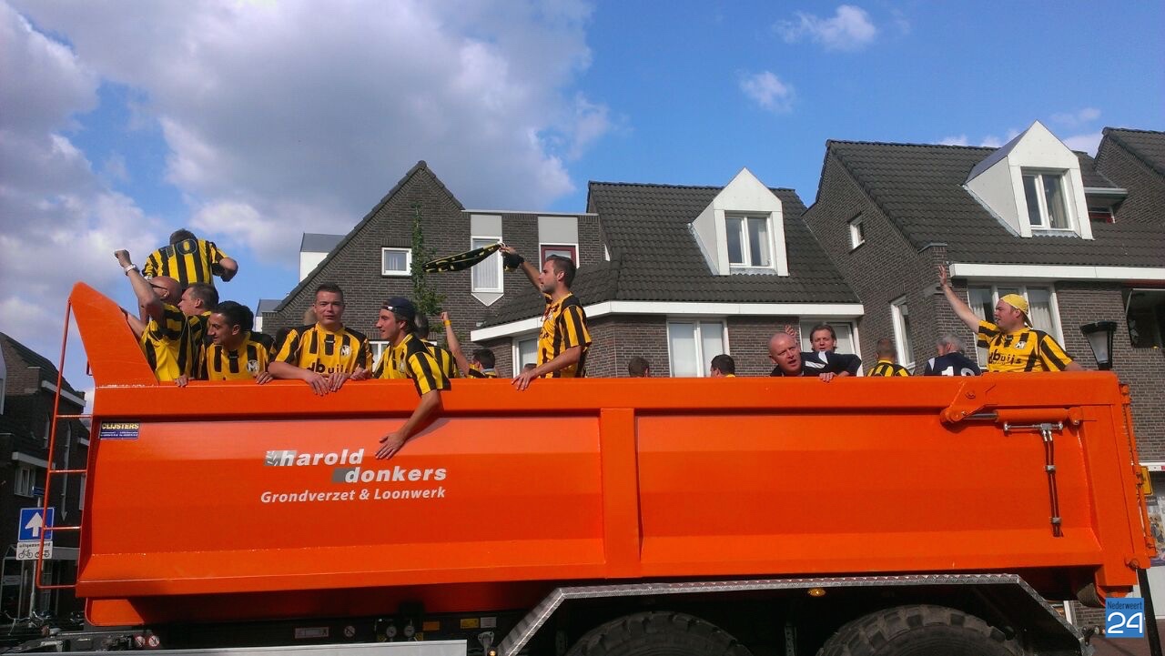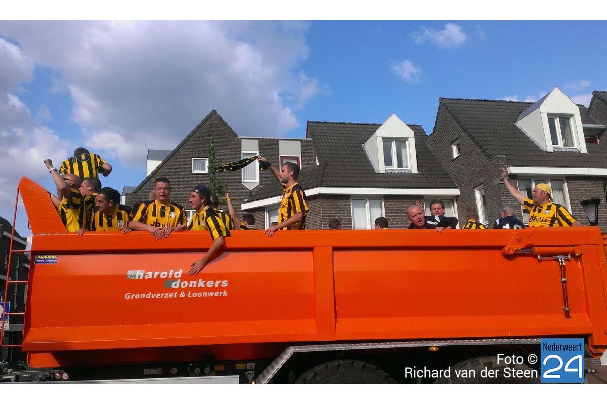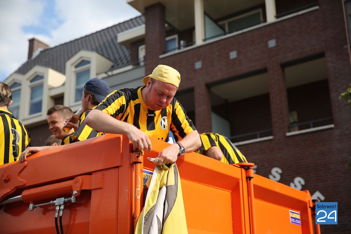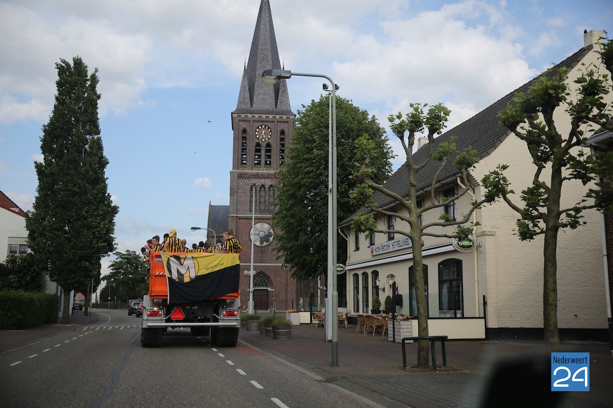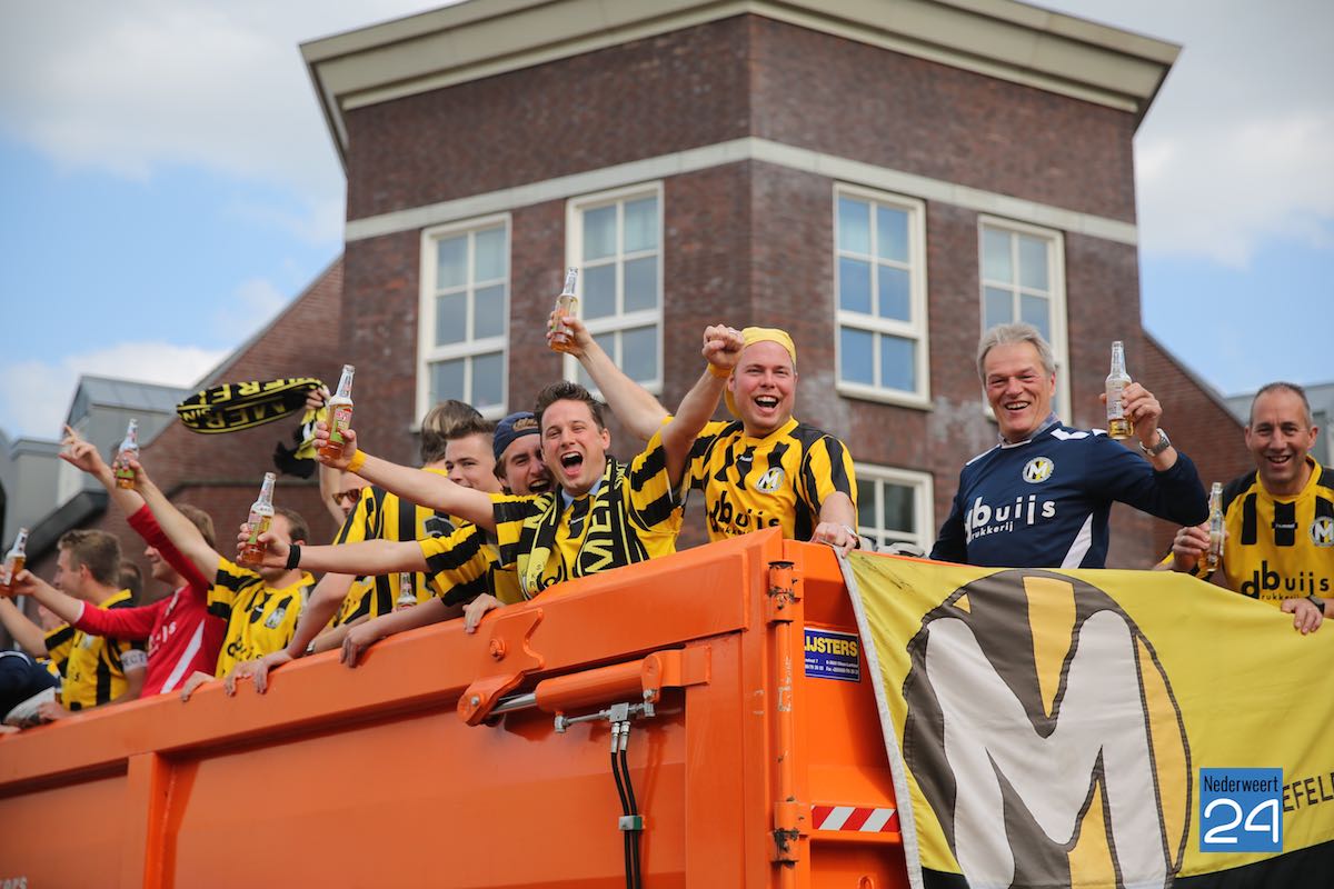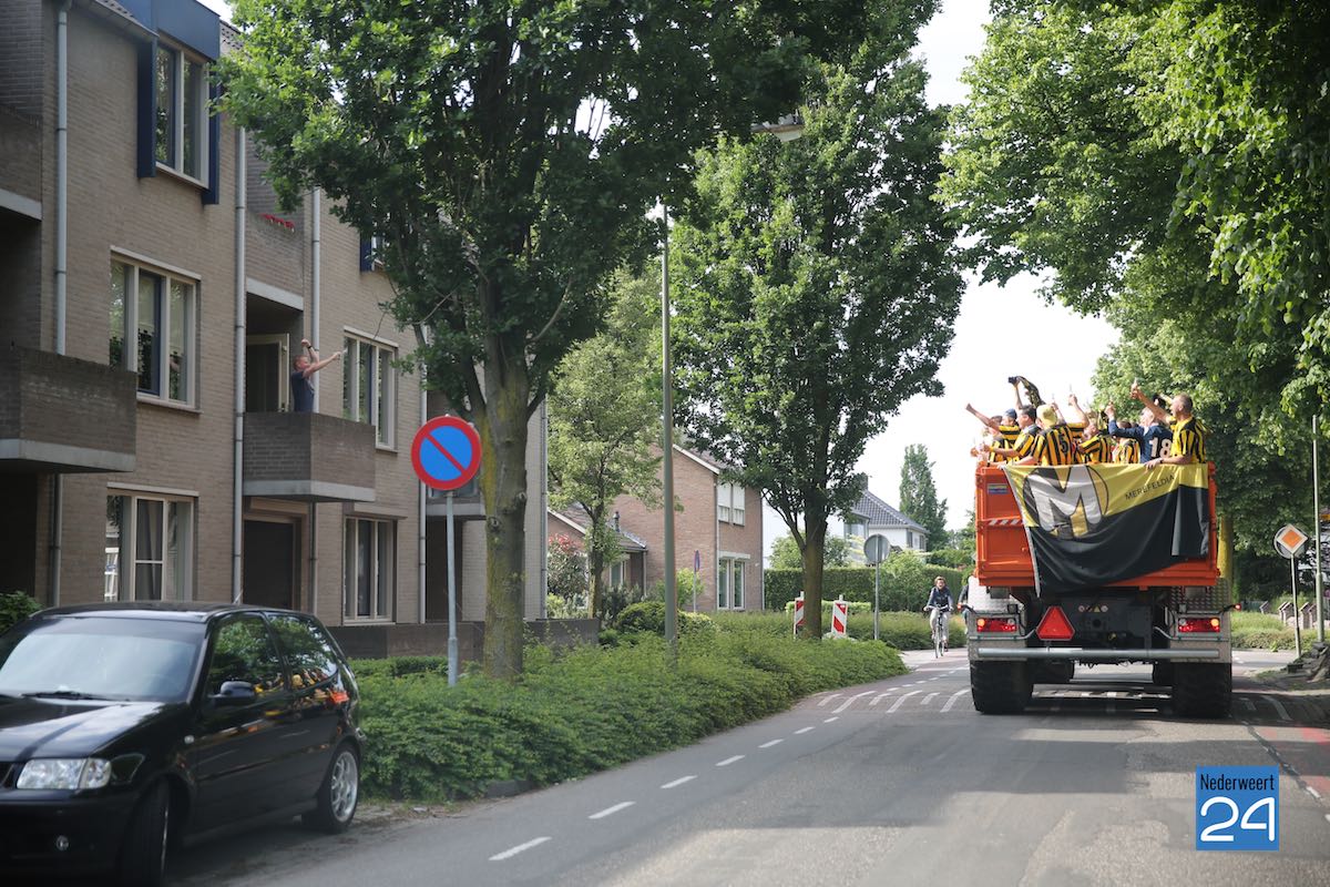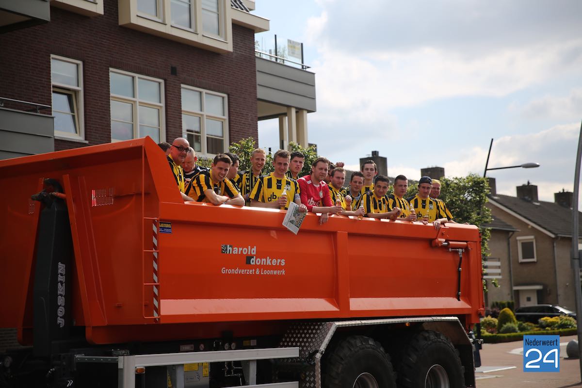 Na een spannende voetbalwedstrijd is Merefeldia zondag gepromoveerd naar de derde klasse. Dit heuglijke feit werd gisteren al flink gevierd maar vandaag trokken de jongens nog een keer door het dorp om van zich te laten horen.